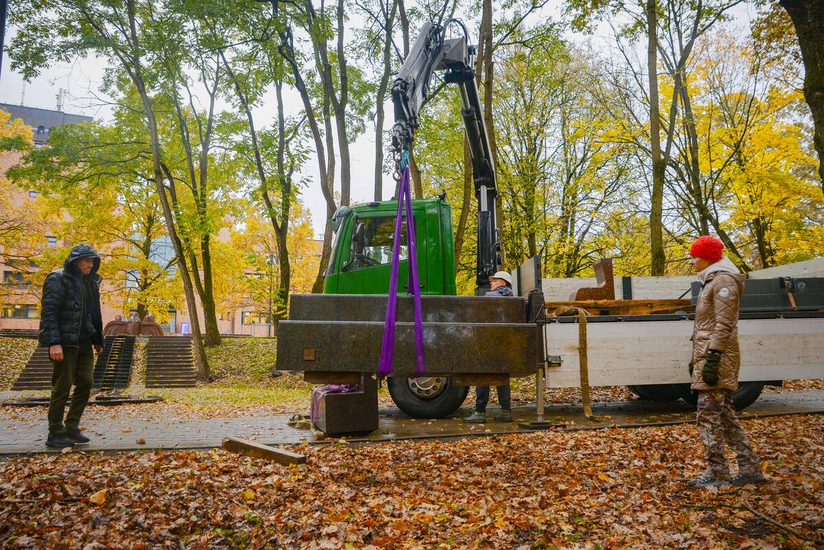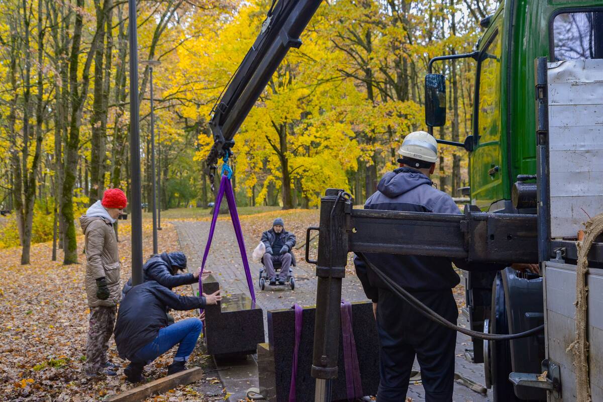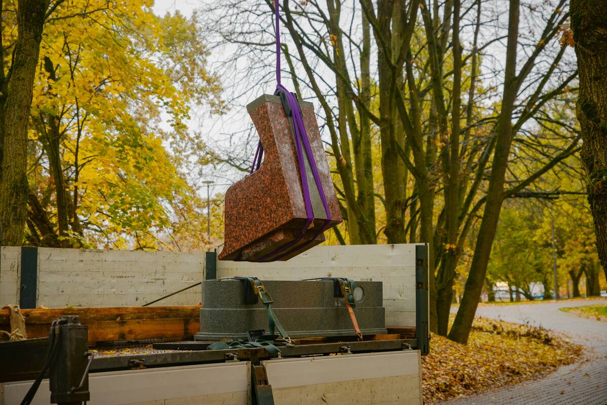Pirmosios Kauno modernizmui skirtos skulptūros pastatymas Mažajame ąžuolyne | KaunoDiena.lt