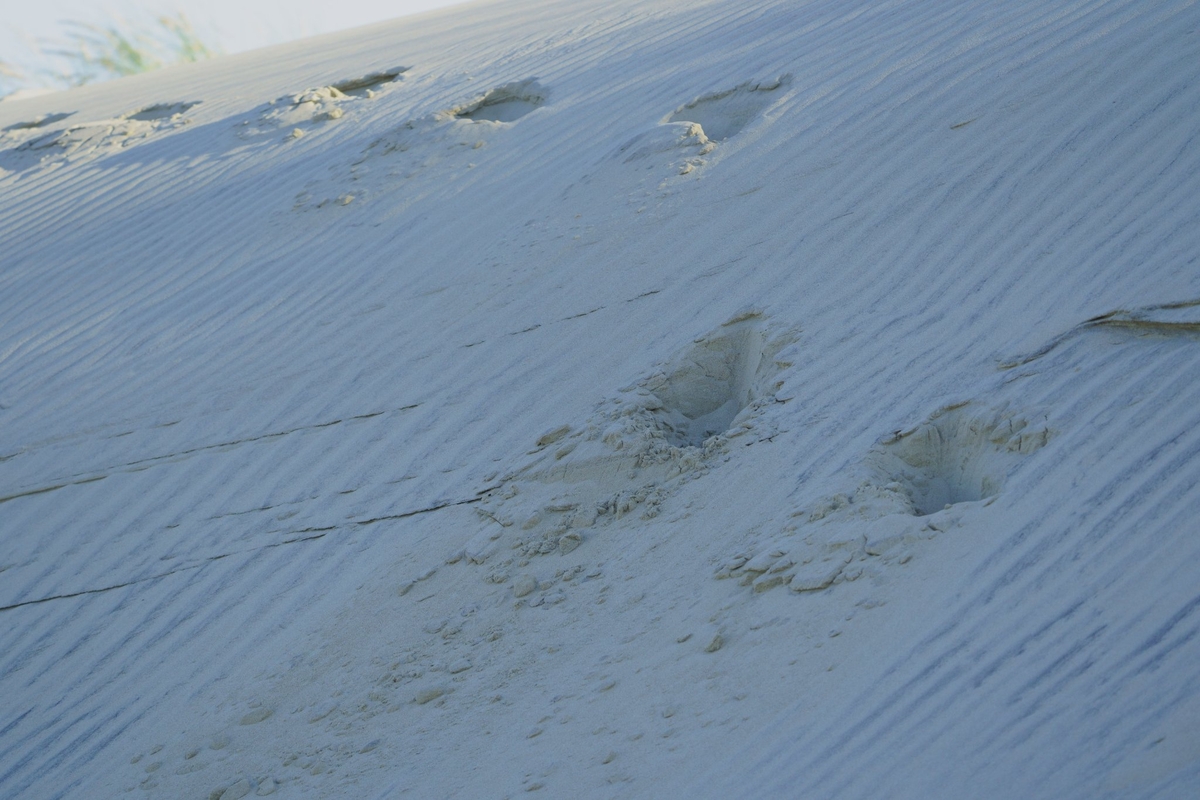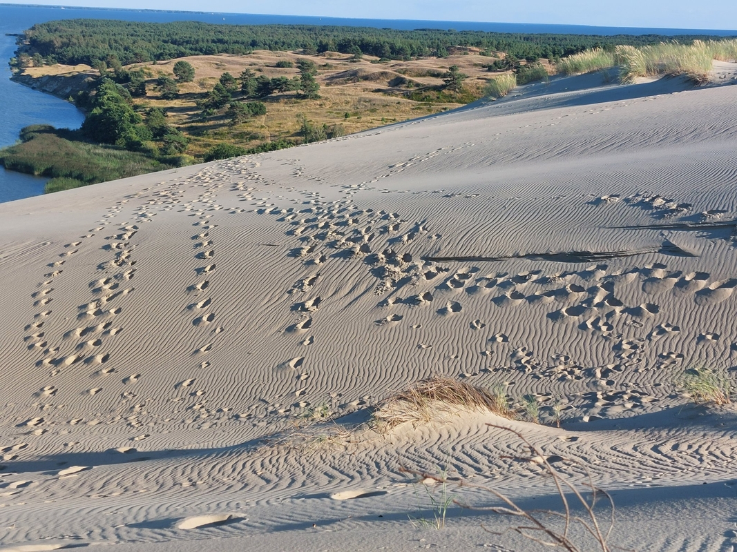 Naglių gamtinio rezervato mokomojo tako pabaigoje, atsistoję ant apžvalgos aikštelės, matote pėdsakus, kurie sunaikino natūraliai supustytas smėlio bangeles puošiančias baltąsias kopas? Čia ir vėl būta didžiapėdžių meškų.