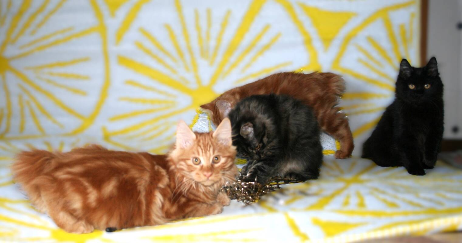 Šiemet katė atsivedė pirmąją vadą – namuose smagiai siaučia šeši kačiukai. Jiems jau suėjo trys mėnesiai. Dalis jų jau rezervuota ir laukia, kada galės iškeliauti į naujus namus.