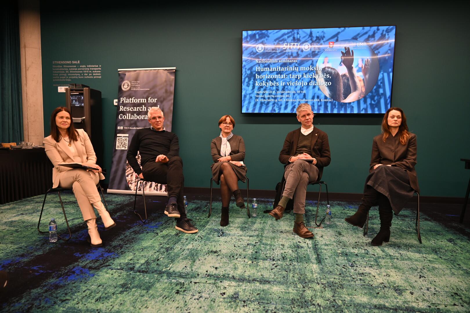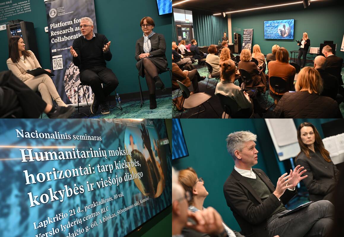 Apibendrinamojoje seminaro diskusijoje, kurią moderavo VDU Užsienio kalbų instituto mokslininkė doc. dr. Vilma Bijeikienė, dalyvavo VU Filosofijos fakulteto dekanas prof. dr. Jonas Dagys, KTU Socialinių, humanitarinių mokslų ir menų fakulteto dekanas doc. dr. Ainius Lašas, VDU Skaitmeninių išteklių ir tarpdisciplininių tyrimų instituto direktorė prof. dr. Rūta Petrauskaitė bei VDU Menų fakulteto mokslininkė doc. dr. Jūratė Tutlytė. Diskusijoje jie aptarė humanitarinių mokslų raidos kryptis ir ateities perspektyvas.