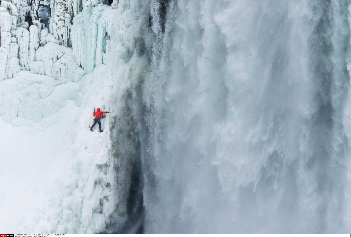 Alpinistas Willas Gaddas tapo pirmu istorijoje žmogumi, įkopusiu į Niagaros krioklį. Pasirodo, į krioklį galima ir įkopti.
