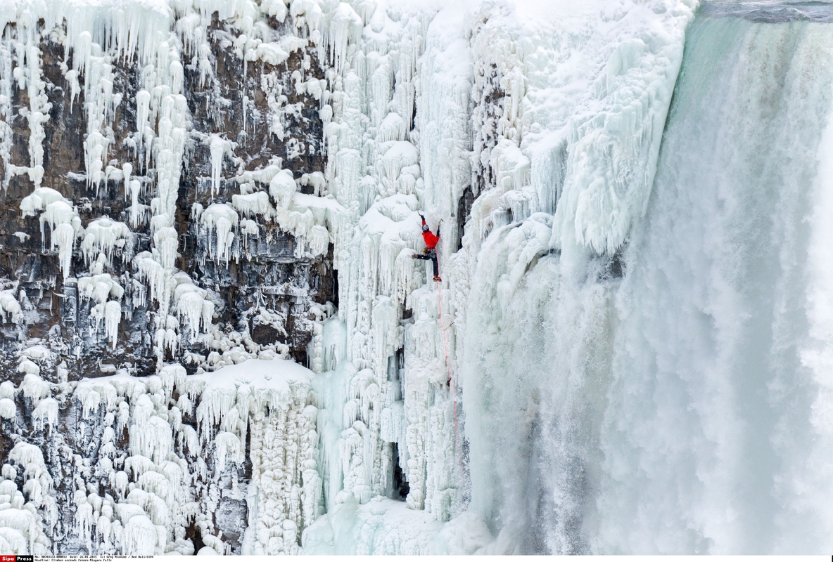 "Iš pradžių brandinau mintį į Niagaros krioklį įkopti vasarą, uolomis, - pasakoja Nat Geo Metų Keliautoju pripažintas alpinistas iš Kanados. – Bet tada tave nesunkiai nuplautų galingi krintančios vandens srautai. O nutiko taip, kad šiemet atėjo labai šalta žiema, ir krioklio vandenys toje vietoje sušalo į ledo sieną, kuria, kaip paaiškėjo, galima kopti. Tą ir padariau. Šiltą žiemą toks triukas neįmanomas."