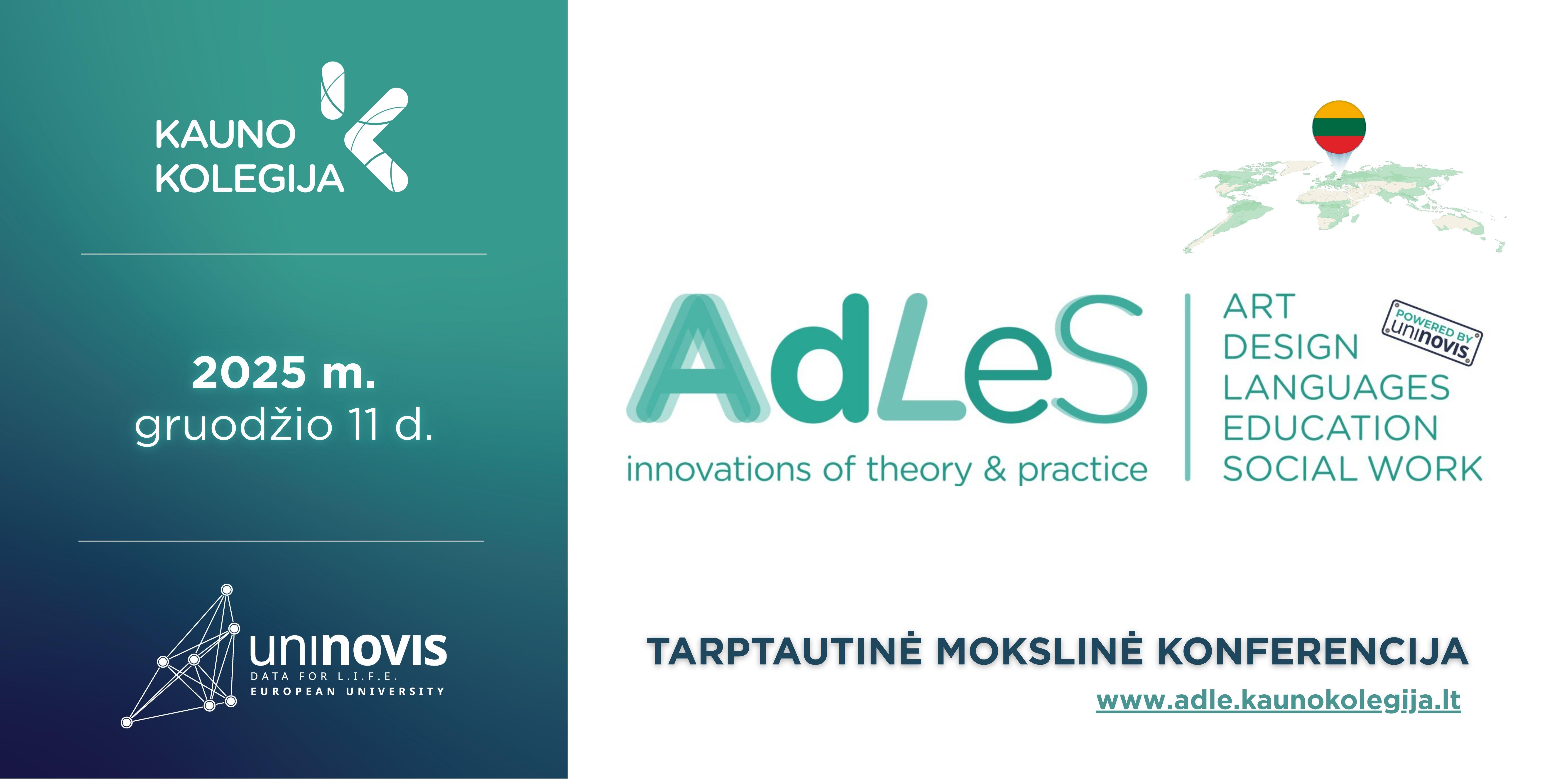 Tarptautinė mokslinė konferencija ADLES Powered by UNINOVIS 2025. Menas, dizainas, kalbos, ugdymas ir socialinis darbas: teorijos ir praktikos inovacijos vyks gruodžio 11 d., 10 val., 407 aud., Kauno kolegijoje (Pramonės pr. 22A, Kaunas). Norėdami dalyvauti – užpildykite registracijos anketą. Dalyvių registracija – iki gruodžio 10 d.