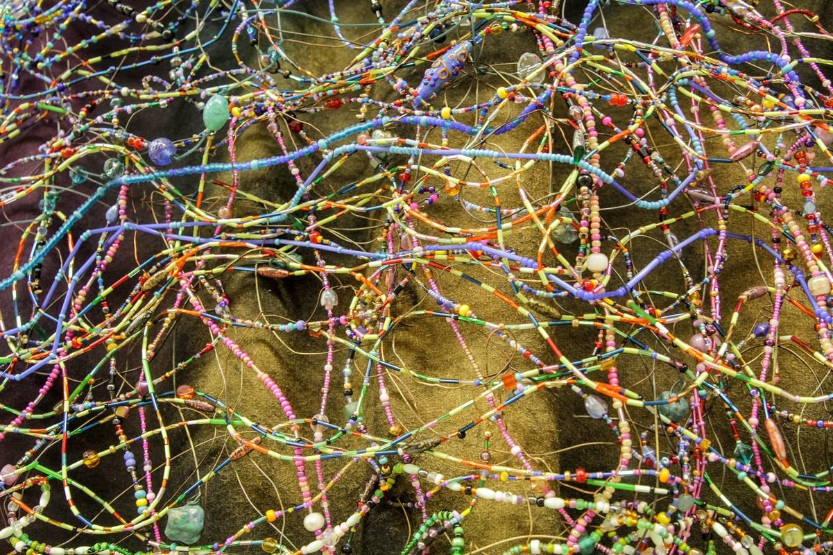 Ekspozicijoje išsiskiria instaliatyvus Marilyn Piirsalu darbas "Septyni kriokliai", austas apvaliomis audimo staklėmis, kurias išrado menininkė Kadi Pajupuu. Kaip pažymėjo L.Oržekauskienė, įprastos audimo staklės audžia horizontaliai, o K.Pajupuu yra sukūrusi nedideles stakles, kuriose siūlų metimą galima padaryti apvalų.