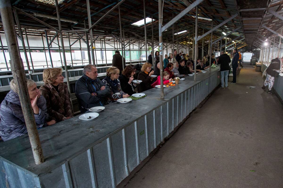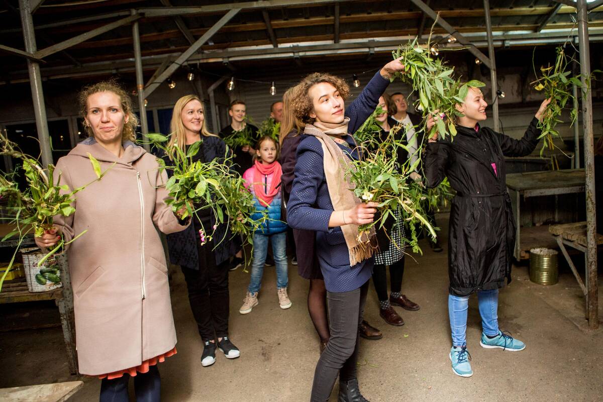 Pasitelkę savanorius – jaunuosius šokėjus ir žiūrovus, primindami nuolatines vadinamąsias žiurkių lenktynes, kai šiuolaikinėje vartotojiškoje visuomenėje nuolatos dėl ko nors varžomasi, jie susigrūmė, kieno višta greičiau atsidurs puode ir bus išvirta. Padėjėjams teko daržovių pjaustytojų, marširuotojų su žalumynais rankose (gal tai užuomina į lauro šakeles, skirta pagerbti nugalėtojams?) vaidmuo.
