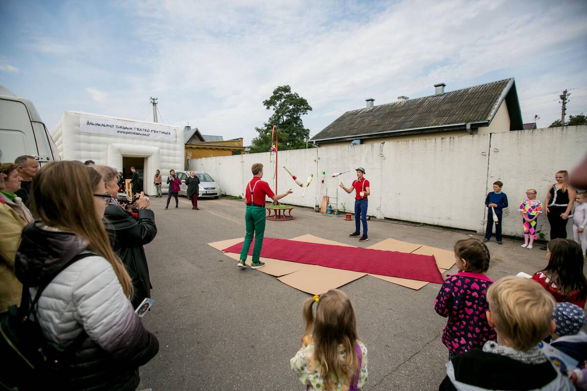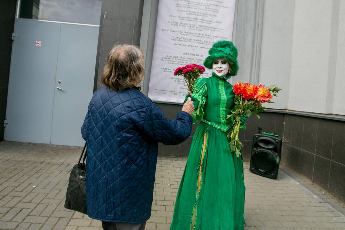 Šeštadienio rytą prie Mėsos halės pakvietė mimų pora. Prie jų stabteldavo ne vienas apsipirkti į turgų užsukęs kaunietis. Kai kuriems aktorių programa turguje buvo netikėta. „Ką šitie čia veikia?“ – rodydamas į mimus, savo kompanionės paklausė vyresnio amžiaus vyriškis. „Taigi čia mimai – Londone jų pilna. Matyt, uždarbiauja – reikia eurą duot“, – vyrą ėmė raginti moteris. Tačiau mimai į turgų užsuko ne rinkti eurų: jų pasirodymu prasidėjo šeštadieninė festivalio programa, kurią pratęsė Kauno valstybinio lėlių teatro spektaklis, cirko programa.