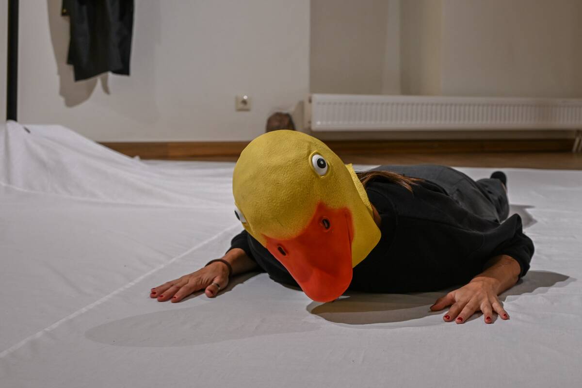 Šiame performanse tyrinėtas santykis tarp vidinių būsenų ir išorės poveikio joms. Antis – migruojantis gyvūnas, priklausantis nuo klimato, taigi nuo išorinių sąlygų. Mikrofonas (instrumentas, fiksuojantis aplinkos garsus) tampa išorinių impulsų įsiklausymo įrankiu. Susietas su giliu kvėpavimu jis kuria harmoningą ryšį tarp vidaus ir išorės, tarp klausymosi ir buvimo. Palankiomis sąlygomis ši jungtis virsta kažkuo nauju. Žmogaus kūnas su anties galva primena prigimtinį žmogaus ryšį su aplinka ir jo veiksmų priklausomybę nuo ją formuojančių sąlygų.