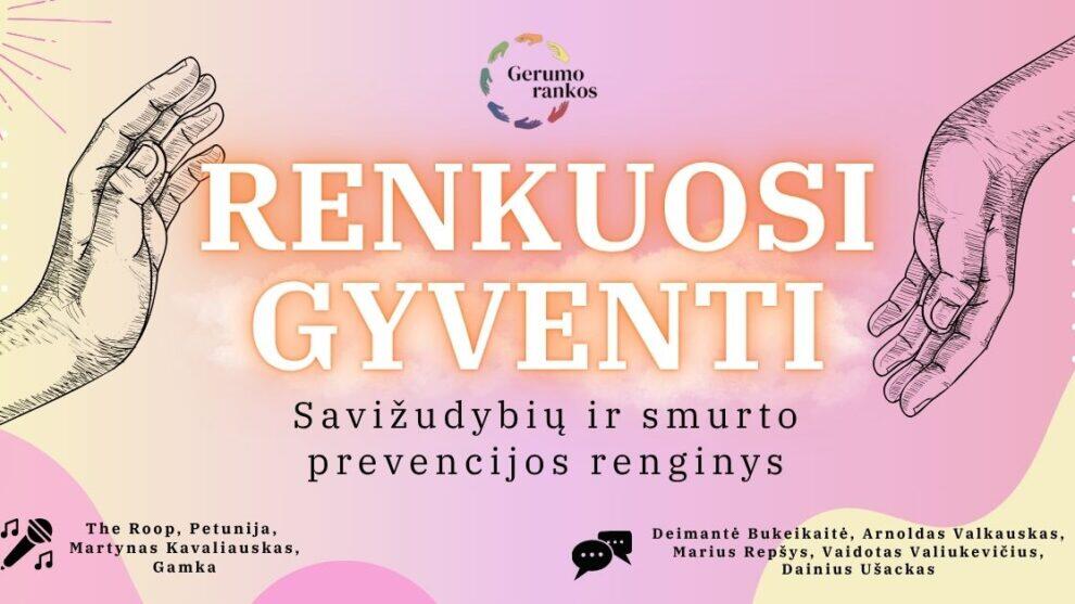 Savižudybių ir smurto prevencijos renginį „Renkuosi gyventi“ Kauno kultūros centre pradės organizacijų muge. Nuo 15 val. čia lauks savižudybių ir smurto prevencijos srityse dirbantys savanoriai: nuo „Jaunimo linijos“, „Vaikų linijos“, „Arkos“ bendruomenės iki „Maisto banko“, „Mamų unijos“, „Sidabrinės linijos“. Lankytojai galės susipažinti su organizacijų veikla, pagalbos bei savanorystės galimybėmis.