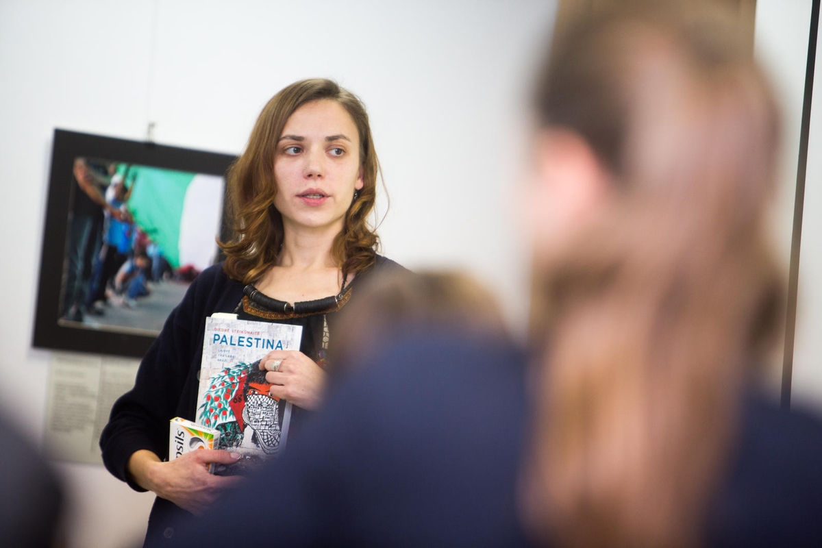 Renginyje apie Palestiną pasakojo ir aktyvistė Gabrielė Tervidytė, kuriai į šią šalį grįžti draudžiama. Praėjusią vasarą moteris buvo suimta Izraelyje, įkalinta ir išsiųsta atgal į Lietuvą, kaip spėjama, dėl aktyvizmo.