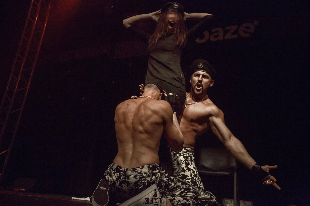 Dalyviai į sceną kvietė drąsiausias kaunietes ir specialiai joms pademonstravo seksualius judesius. Kiti merginas kaitino užsilipę ant stalų ir baro. Kaunietės taip įsiaudrino, kad ne kartą pliaukštelėdavo per gražius vyrų užpakaliukus. Striptizo meistrai scenoje įsikūnijo į įvairių specialiųjų tarnybų atstovus, kareivius. Vyrukai šoko apsirengę ir liaudiškais drabužiais, ir su trumpais sijonėliais.