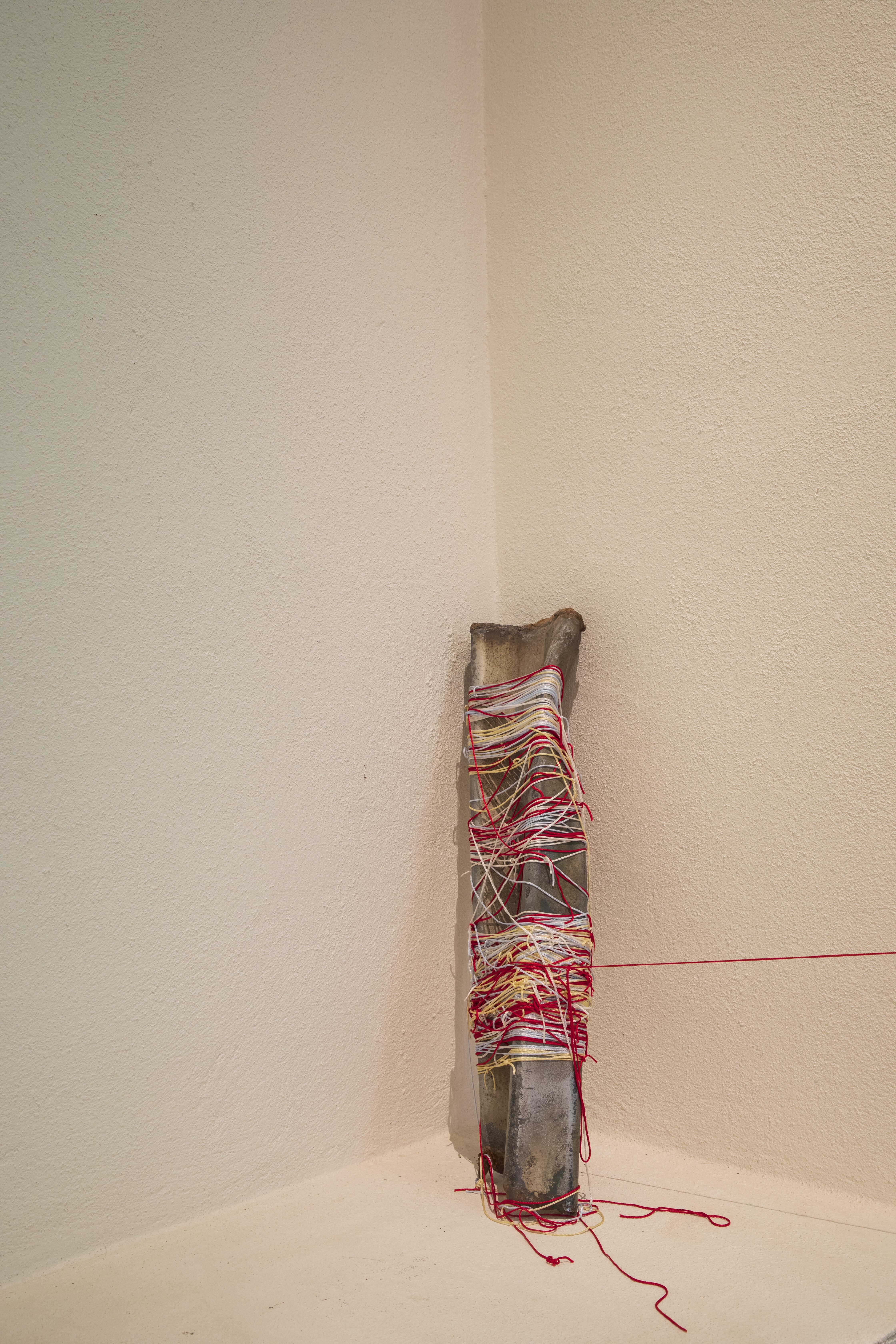 Vos įėjusi į galeriją ir pasukusi galvą pamačiau elektrinės spalvos tinklelį, naudojamą uždengti griuvančius pastatus. „Negi galeriją vėl remontuoja?“, – sekundei susimąsčiau. Priėjusi arčiau ir atsivertusi savo menininkų žemėlapį, supratau, kad tai – Viktorijos Balkutės instaliacija „Tinkloraišis“. Nors iš aprašymo sunku suprasti, ką vaizduoja šis kūrinys, sugalvojau savo teoriją: tokie pastatus apgaubiantys tinklai yra tarsi pleistrai, uždėti laikinam būviui su mintimi, kad savaime viskas sugis ir susitvarkys.