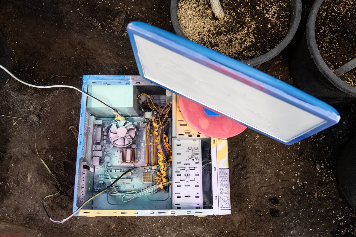 Visą sausį veiksiančioje parodoje „Tvarumo dūžis / Sustainable Crash“ – originalūs, individualumo nestokojantys projektai, kurių kūrėjai daug dėmesio skyrė medžiagiškumui ir funkcionalumo permąstymui. Todėl tarp subtropinių augalų įsikūrė ir šaldytuvas, ir tapytojos rankose permainyta kompiuterinė įranga, ir švytinčios, laikui bėgant rūdimis apsitraukiančios metalo konstrukcijos.