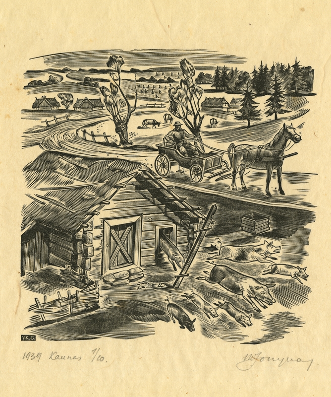 Dailininkas atkreipė dėmesį į lietuvių literatūros klasiko Kristijono Donelaičio poemą "Metai". Pradėjo kurti ne tik iliustracijas, bet ir knygos visumą: knygos proporcijas, formatą, šrifto dydį, iliustracijų ir tuščių plotų santykį. Panašius iliustracijų kūrimo principus taikė ir Petro Cvirkos romanui "Žemė maitintoja" (1940).