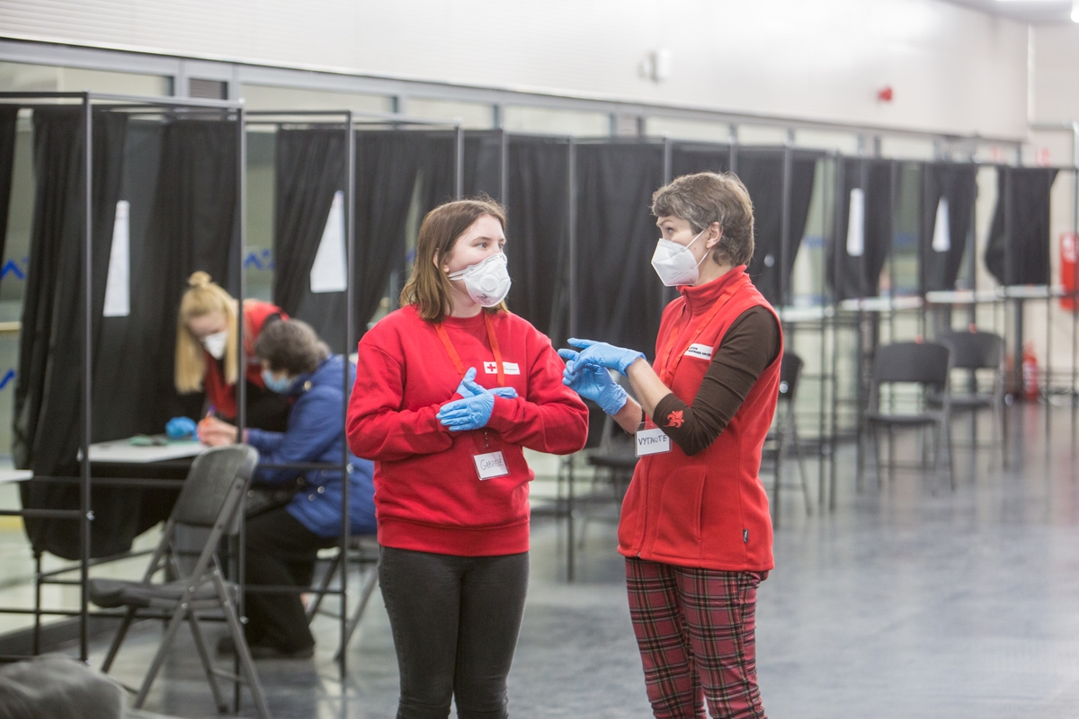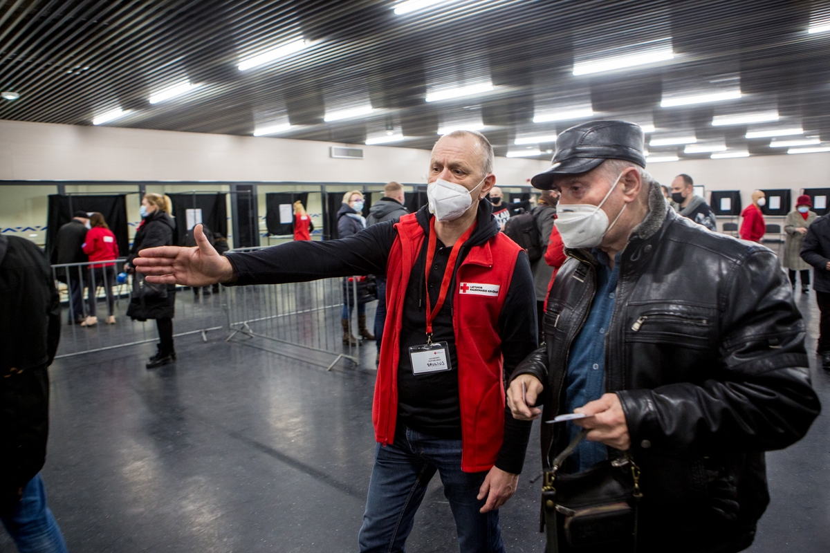Šiandien apie 1 tūkst. Raudonojo Kryžiaus savanorių dirba keturiolikoje vakcinacijos centrų visoje Lietuvoje. Jie reguliuoja besiskiepijančiųjų srautus, užpildo dokumentus, atsakinėja į klausimus, konsultuoja telefonu – atlieka darbą, kuris atimtų laiką iš profesionalų.