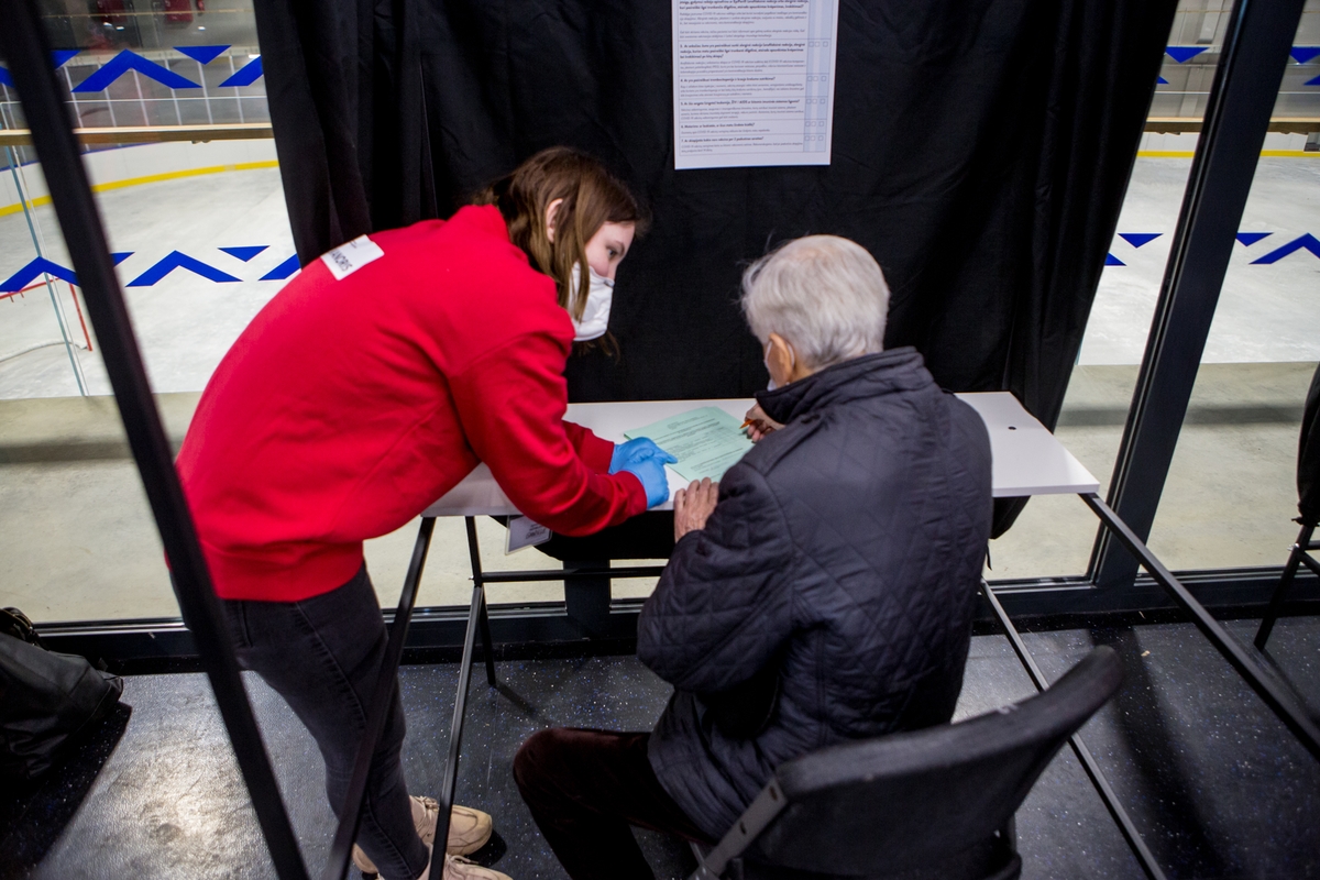 Raudonojo Kryžiaus ir kitų organizacijų savanoriai išgelbėjo ne tik COVID-19 reanimacijos, bet ir planinės pagalbos sistemos darbą. Be papildomų rankų nebūtų apsiėję ir vakcinavimo centrai. (Vilmanto Raupelio nuotr.)