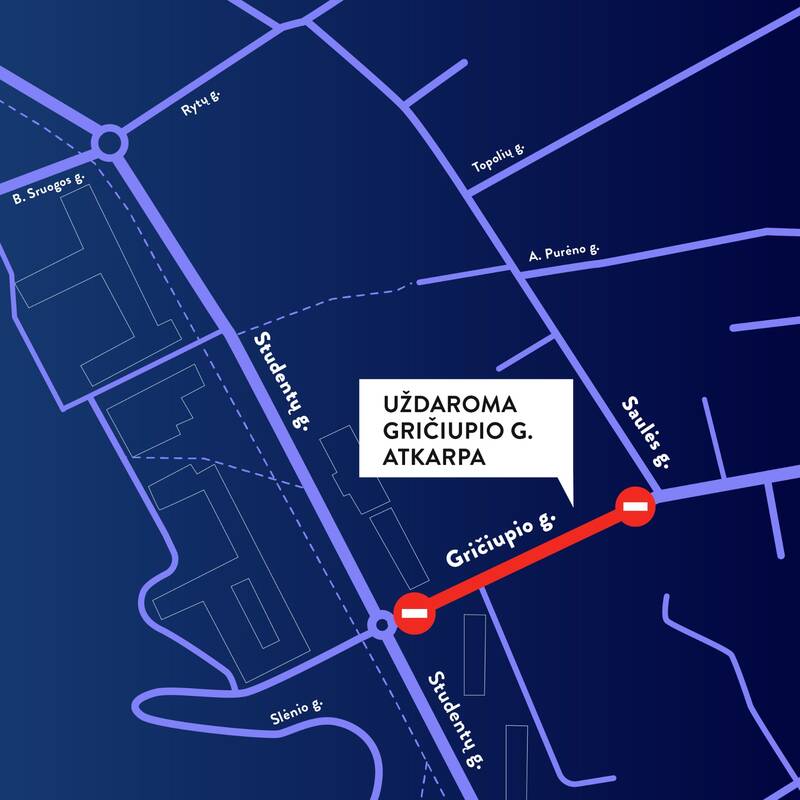 „Dėl įgriuvos Gričiupio gatvėje laikinai ribojamas eismas. Informuojame, kad Gričiupio gatvėje įvyko buitinių nuotekų tinklų avarija, dėl kurios atsivėrė įgriuva. Bendrovės „Kauno vandenys“ avarinių darbų rangovas deda visas pastangas, kad avarijos padariniai būtų kuo skubiau likviduoti. Įspėjame, kad dėl atsivėrusios įgriuvos šiuo metu laikinai uždaryta atkarpa nuo Studentų gatvės sankryžos iki Saulės gatvės. Vairuotojų prašome atidumo ir kantrybės. Atsiprašome už galimus laikinus nepatogumus ir dėkojame už supratingumą“, – feisbuke rašė bendrovė.