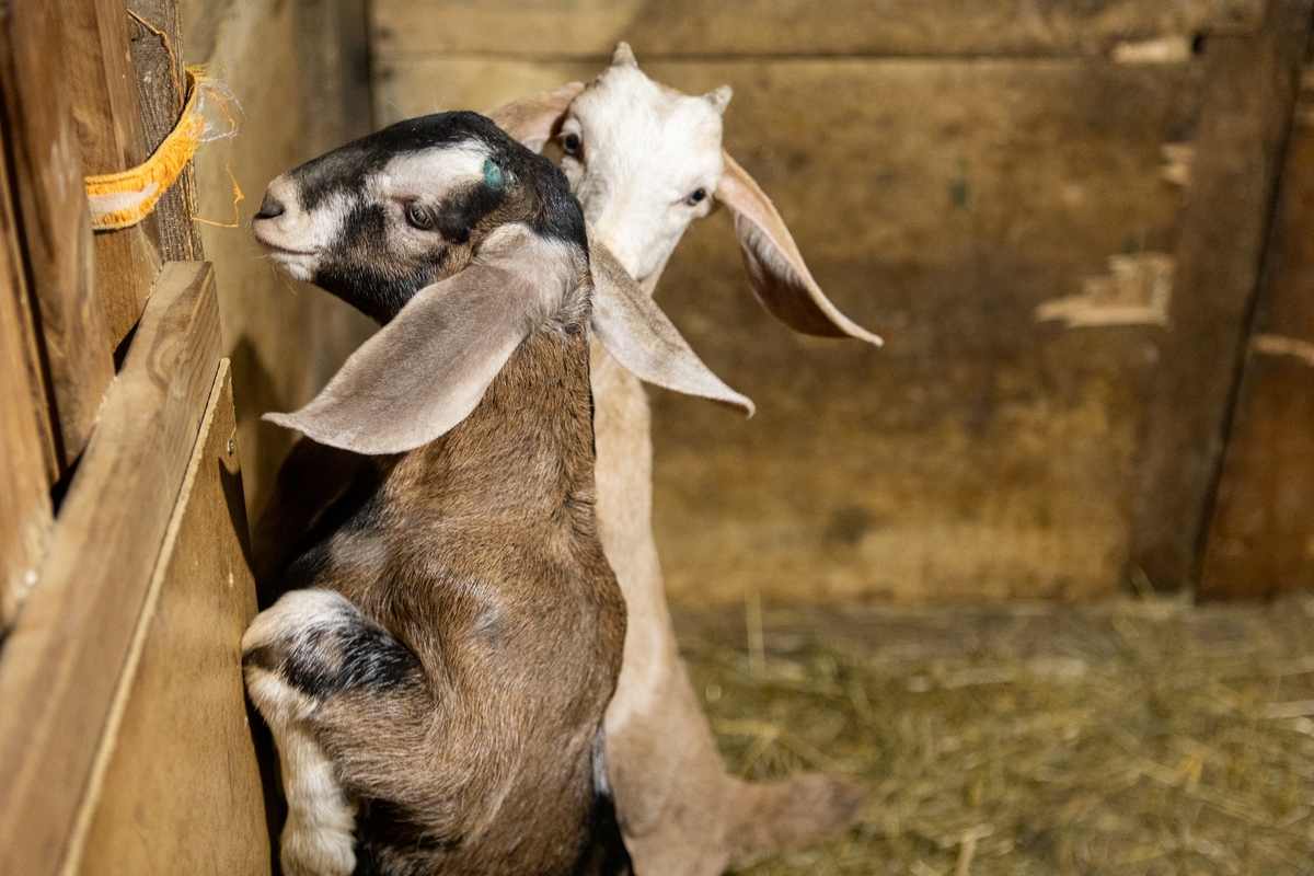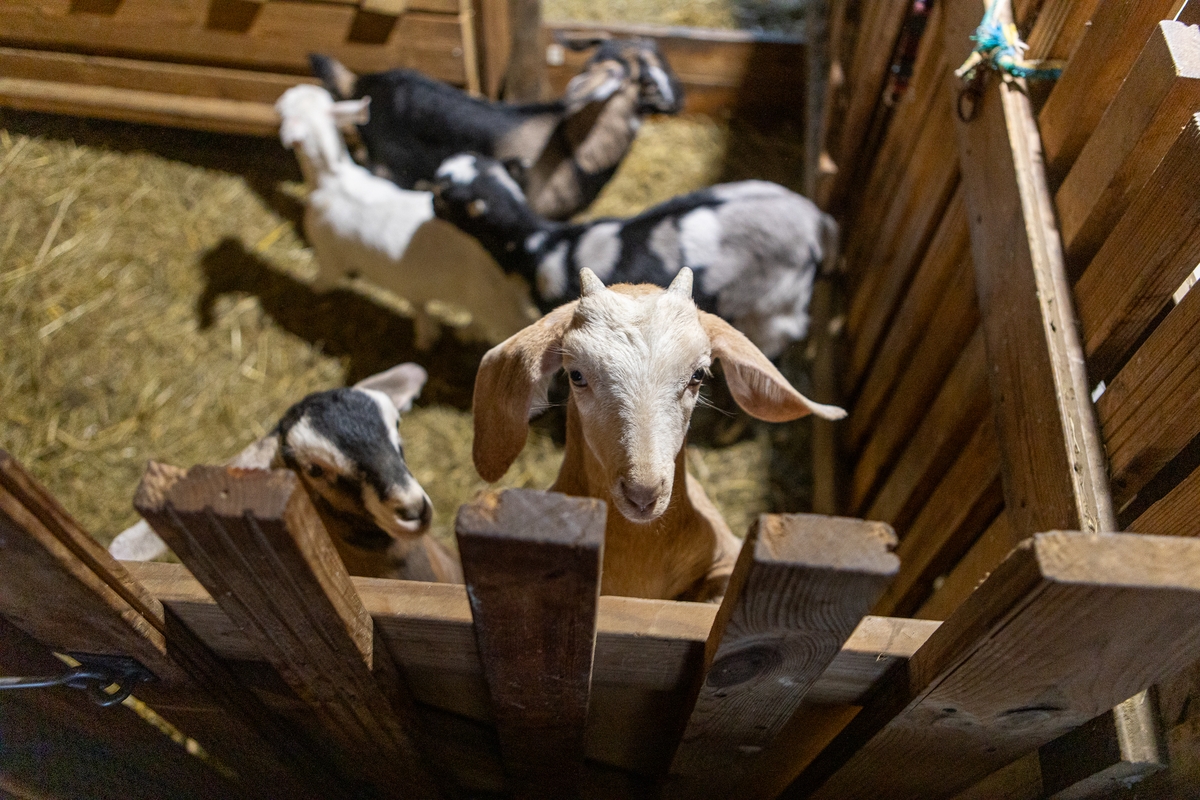 Šiuo metu tvarte mekena 20 melžiamų ožkų, septynios jauniklės, dvylika mažylių. Bandos pagrindą sudaro 9–12 metų patelės. „Kiti stengiasi, kad dominuotų jaunos ožkos, nes jos duoda daugiau pieno, o aš noriu, kad gyvuliukai būtų paklusnūs. Atėjusi į tvartą pasakau: „Į vietas“ ir visos sustoja, kur joms priklauso. Mūsų augintinės labai greitai prisitaiko prie permainų. Jei reikia perkelti į kitą gardą, po dviejų dienų jau žino, kur jų vieta, pašauktos vardu reaguoja pakeldamos ausytes, o jauniklės labiau blaškosi“, – ožkytes gyrė šeimininkė.