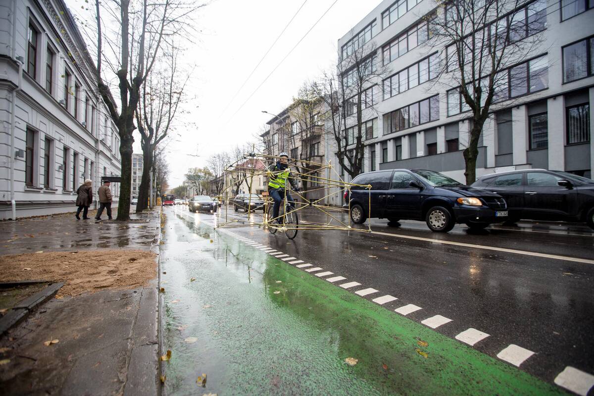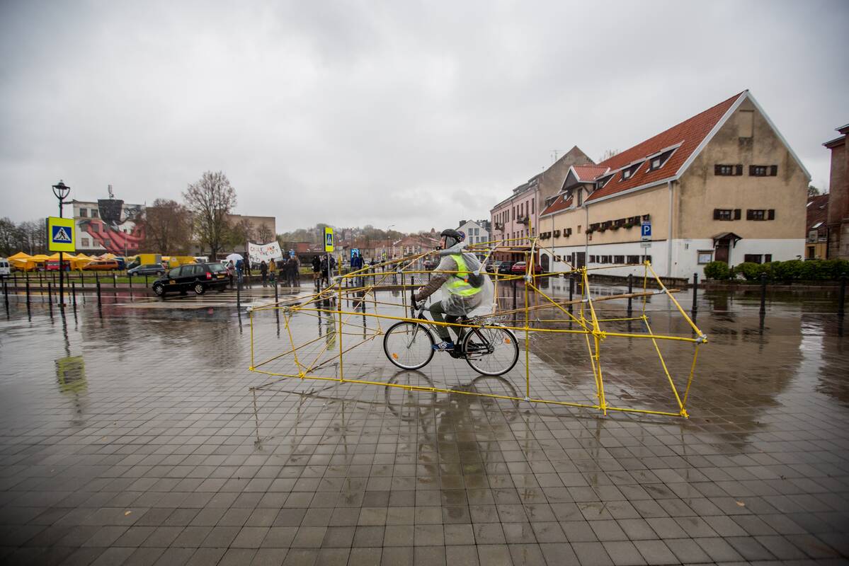 Tokia netradicine akcija siekiama atkreipti dėmesį į tai, jog dviratis užima gerokai mažiau vietos, tad gali išlaisvinti gatves nuo spūsčių.