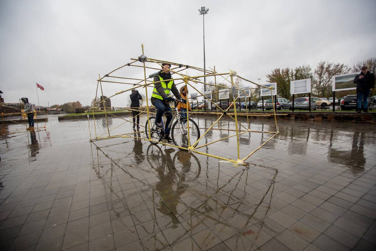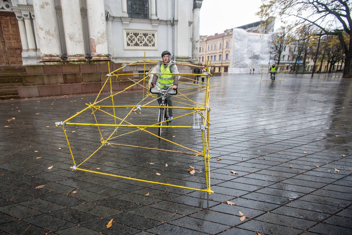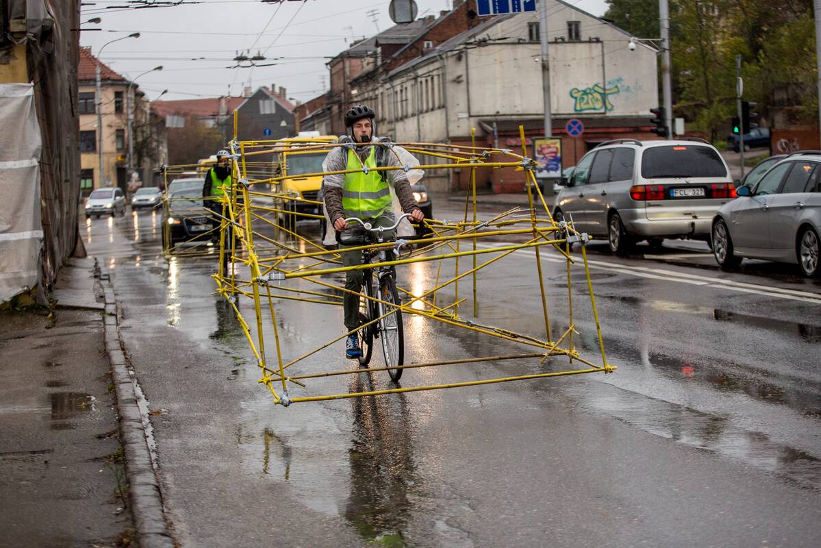 Padarytos konstrukcijos atitiko didesnių automobilių gabaritus, tad gatvėse užėmė beveik visą eismo juostą. Neįprasti dviratininkai nepabūgo lietaus ir maršrutą pradėjo nuo Kauno pilies automobilių aikštelės, važiavo Šv. Gertrūdos, E.Ožeškienės, K.Donelaičio gatvėmis ir finišavo ties Kauno Šv. arkangelo Mykolo (Įgulos) bažnyčia. Visą maršrutą juos lydėjo policijos ekipažas bei smalsūs vairuotojų žvilgsniai.