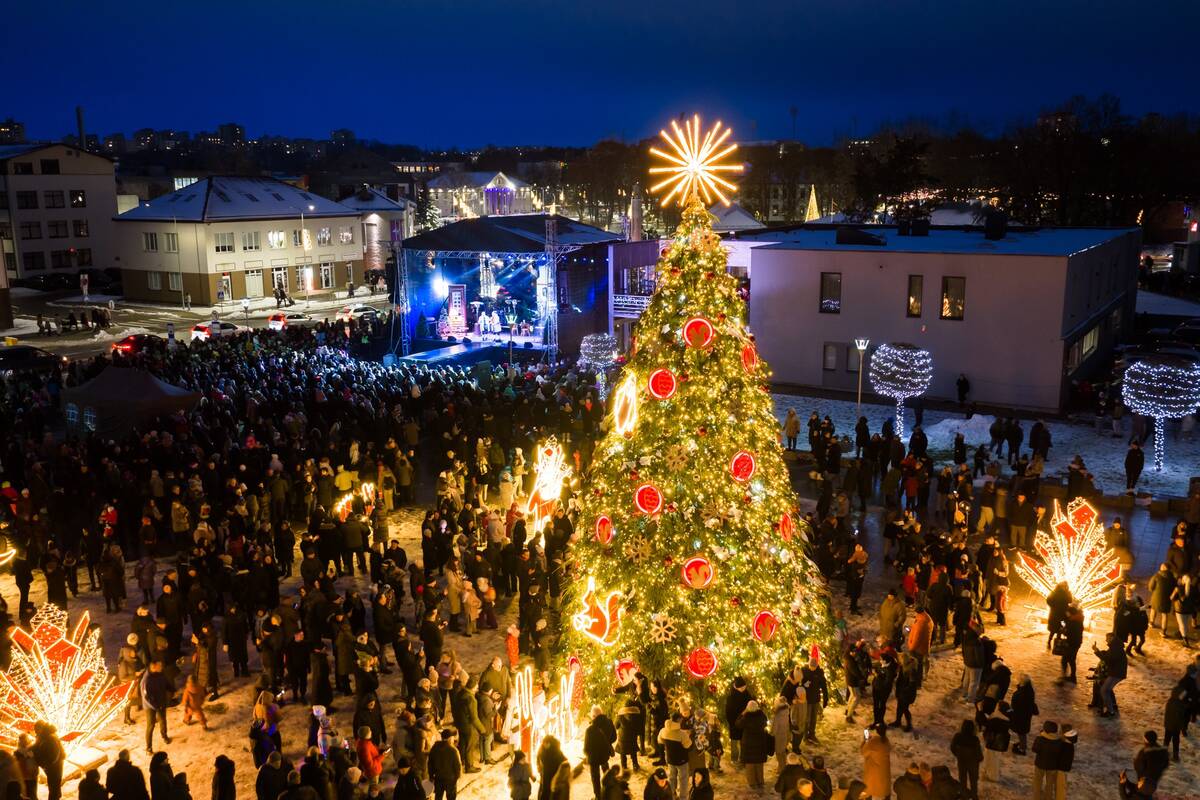Jonavoje įžiebta Kalėdų eglutė ir Kalėdinių eglučių miestelis