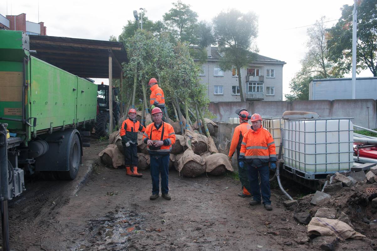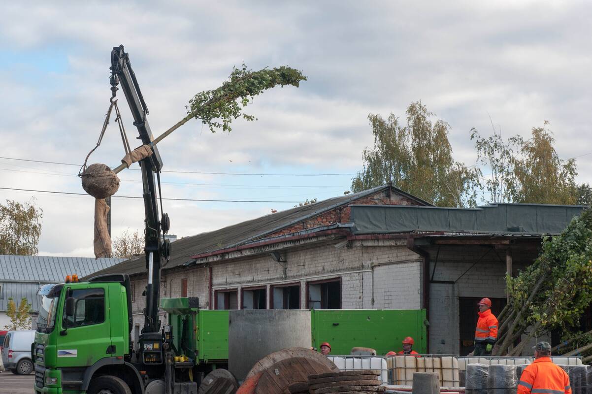 Anot specialisto, tokius didelius medžius Kaune sodins pirmą kartą. Iki šiol medelius du suaugę žmonės laisvai iškeldavo, o dabar reikia specialaus keltuvo.