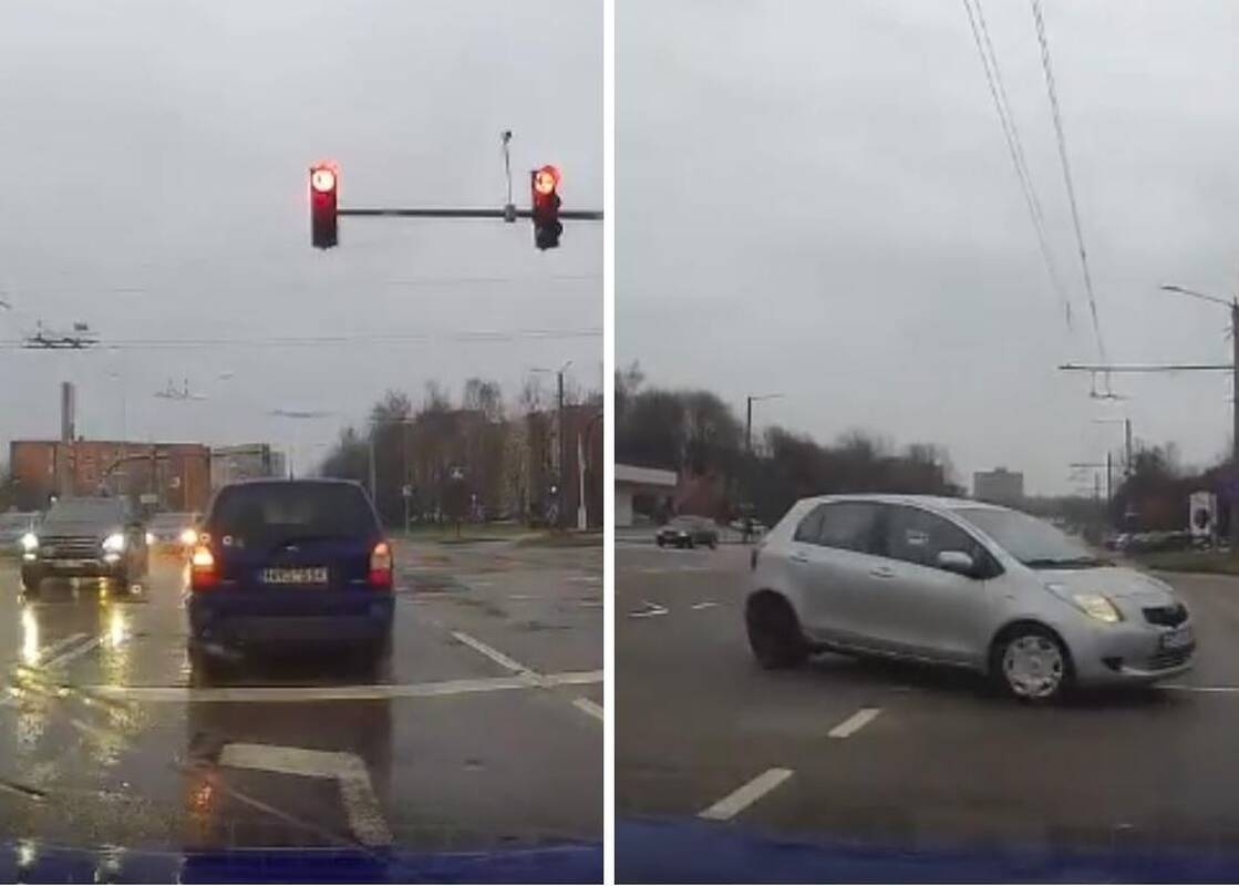 Kaunietei antradienį teko pamatyti ir dar vieną avarinę situaciją dėl to, jog kita vairuotoja užsižiopsojo ir sankryžą kirto degant raudonam šviesoforo signalui. Birželio 23-osios ir Taikos prospekto sankryžoje Diana S. užfiksavo, kaip prieš ją stovėjęs automobilis įvažiuoja į judrią sankryžą ir bando sukti į kairę.