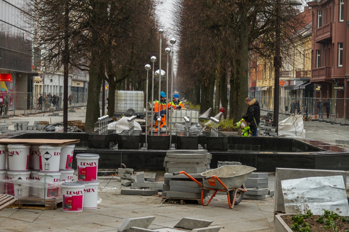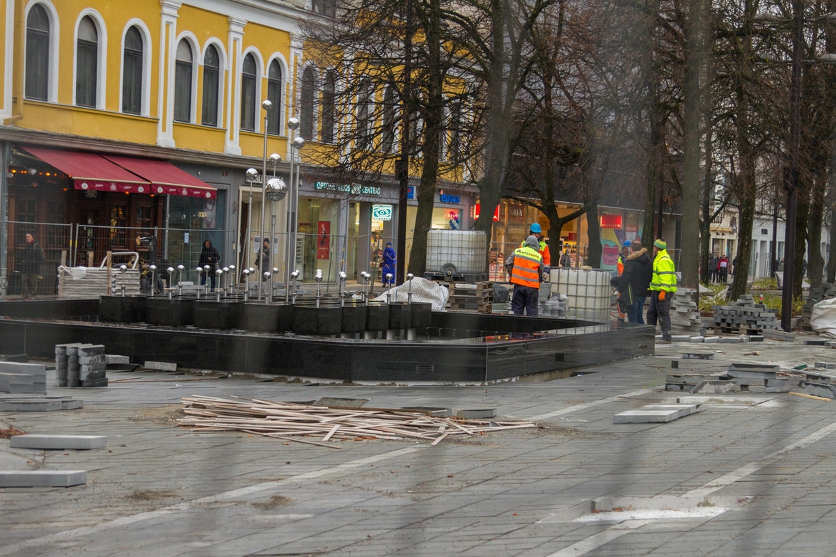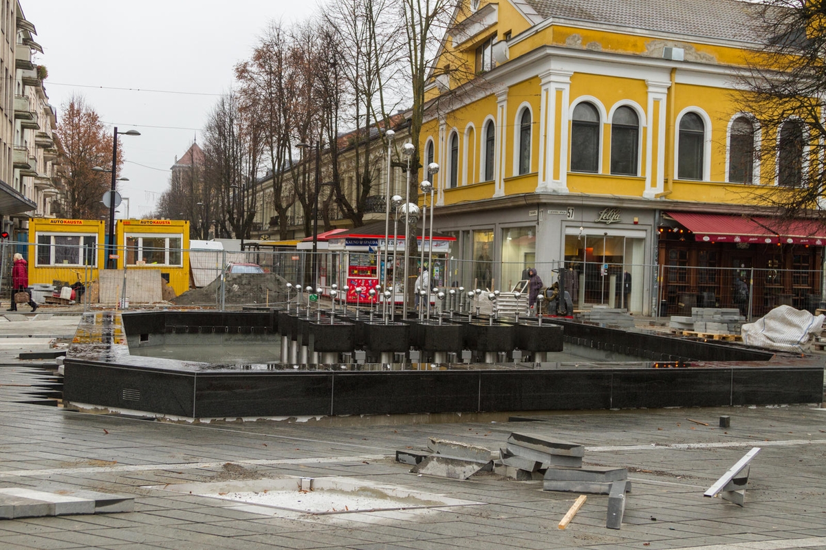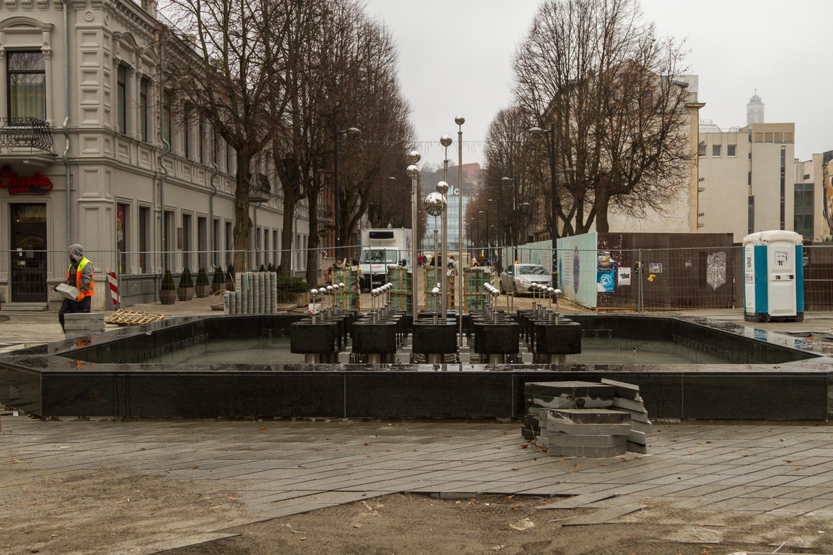Prieš kelias dienas rekonstruojamas Laisvės alėjos fontanas pasirodė naujais ir blizgančiais bumbulais. Nuėmus kurį laiką fontaną dengusią palapinę, darbininkai antradienį išbandė ir naujas fontano sroves.