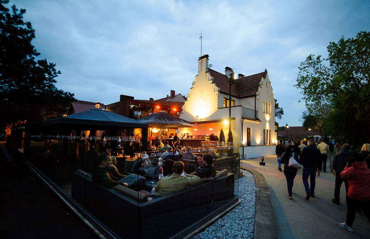 Po "Pilies sodo" vėliava – taip prisiglaudė restoranas "Grill" ir "Alaus galerija". "Norėčiau atkreipti dėmesį, kad restorane kepsniai kepami ant ekologiškų anglių. "Alaus galerijoje" – daugiau nei 30 alaus rūšių, tad šio gėrimo mėgėjai neliks abejingi", – sakė V.Jarusevičius.