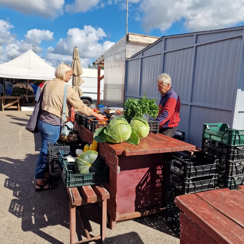 Šalia agurkų ir pomidorų jau taisosi rudeninės daržovės: cukinijos, moliūgai, žiediniai kopūstai. Pastarieji pardavinėjami vienetais, už „galvą“ prašoma iki 2 eurų. Cukinijos perpus pigiau, o mažesnę galima įsigyti ir už pusę euro.