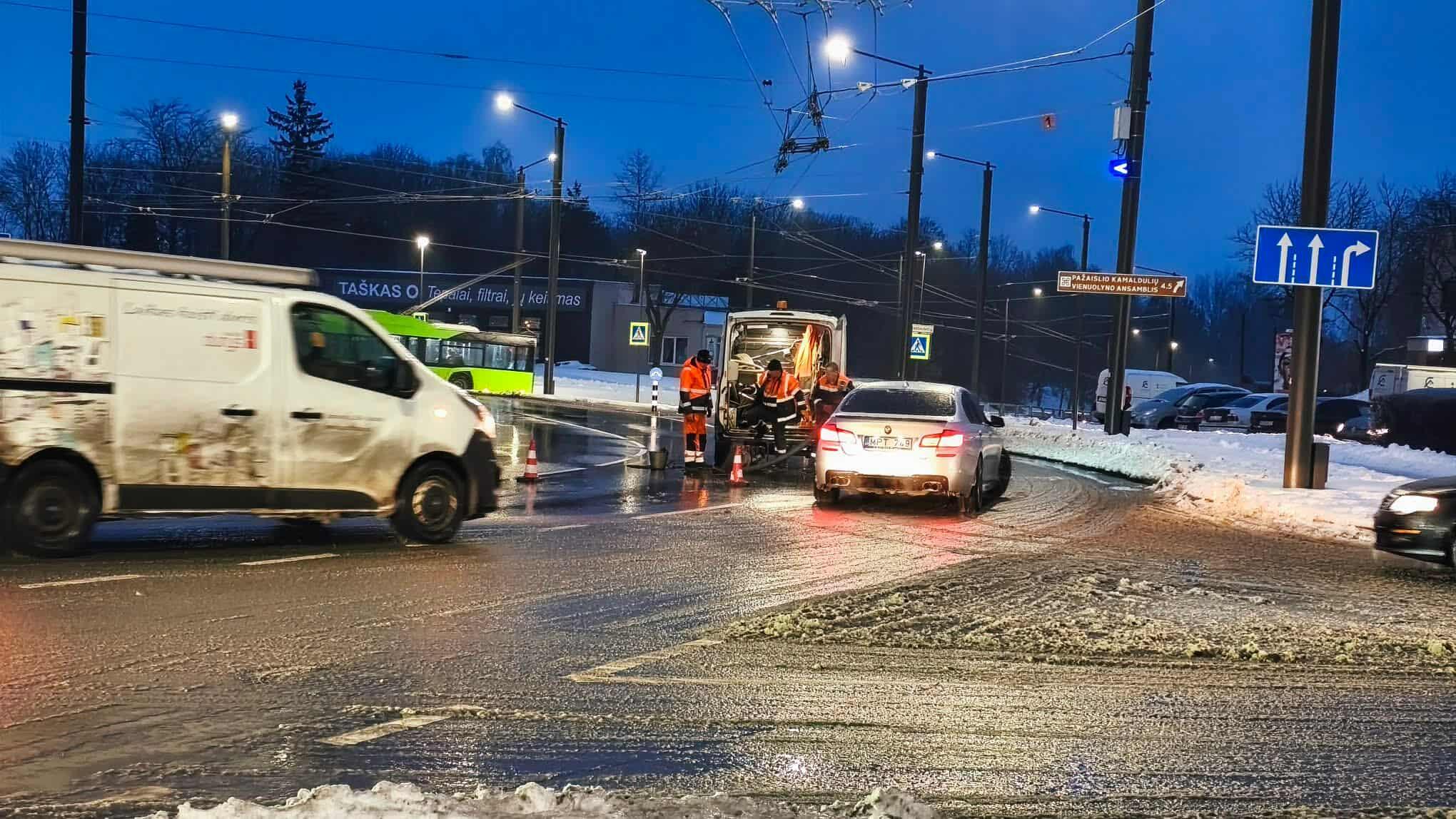 Pasak jo, kelininkai atliko slidumo mažinimo darbus visą pastarąją naktį.