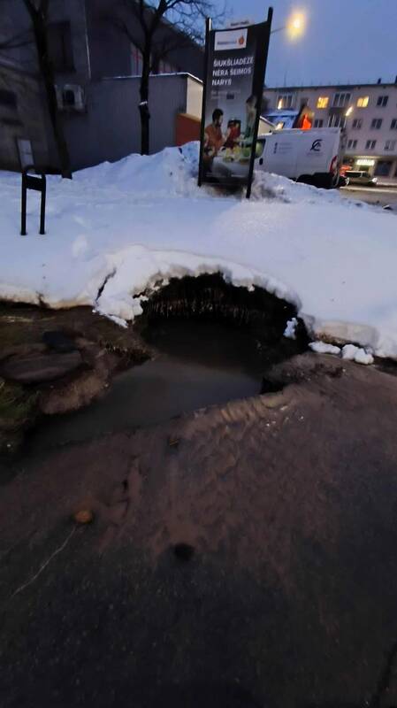 Socialiniuose tinkluose taip pat pranešama, kad fontanas veržiasi iš trūkusio karšto vandens vamzdžio ties VI forto žiedu.