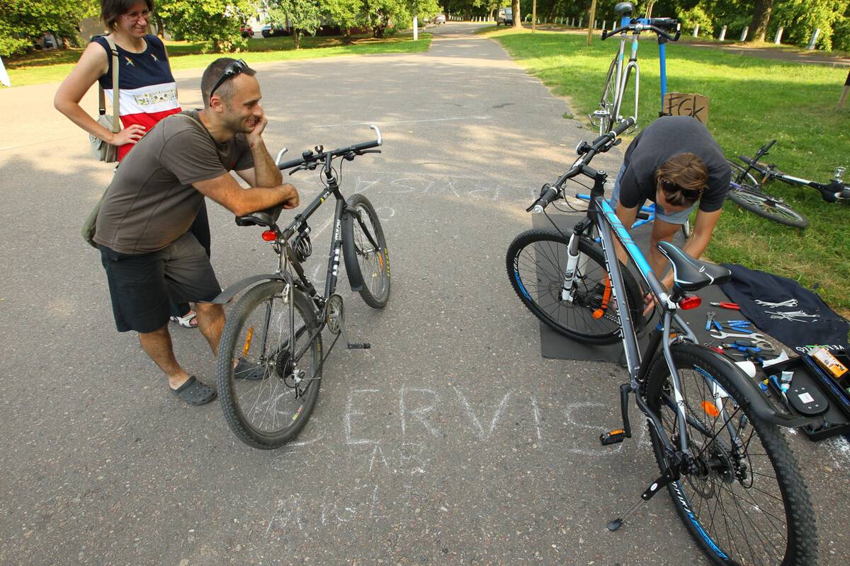 Savaitgaliais Kauno senamiestyje galima sutikti grupelę dviračių entuziastų, kurie siūlo neįprastą paslaugą - nemokamą profesionalų dviračių servisą. Keturi jų dirba dviračių parduotuvėse, kiti šiaip prijaučiantys ir nusimanantys apie šią transporto priemonę.