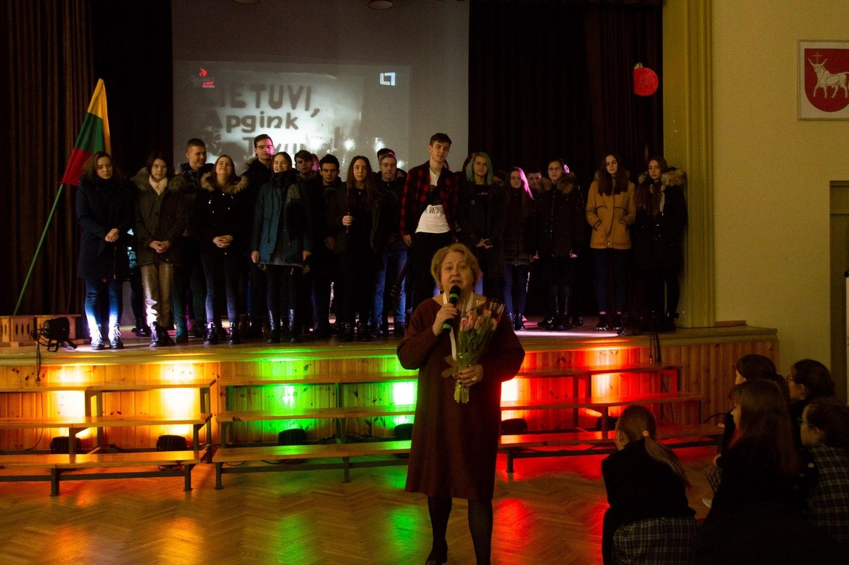 Gimnazijos aktų salė vieną pamoką virto laisvės gynėjų aikšte. I – IV gimnazijos klasių mokiniai mini spektaklyje įtikinamai atkūrė nepamirštamus Sausio 13-osios įvykius: žmonių vienybę, susitelkimą, tikėjimą savo tiesa. Įtaigiai suvaidinta ginkluoto išpuolio prieš taikią minią scena, lietuvių ryžtas nesitraukti nė per žingsnį sujaudino visus įdėmiai stebinčius vaidinimą mokinius ir mokytojus. Vėliau mokinių atliekamos dainos „Laisvė“ žodžiams pritarė ir žiūrovai. Gimnazijos administracija, mokytojai prisiminė tą atmintiną dieną, pasidalijo savo pačių išgyvenimais.
