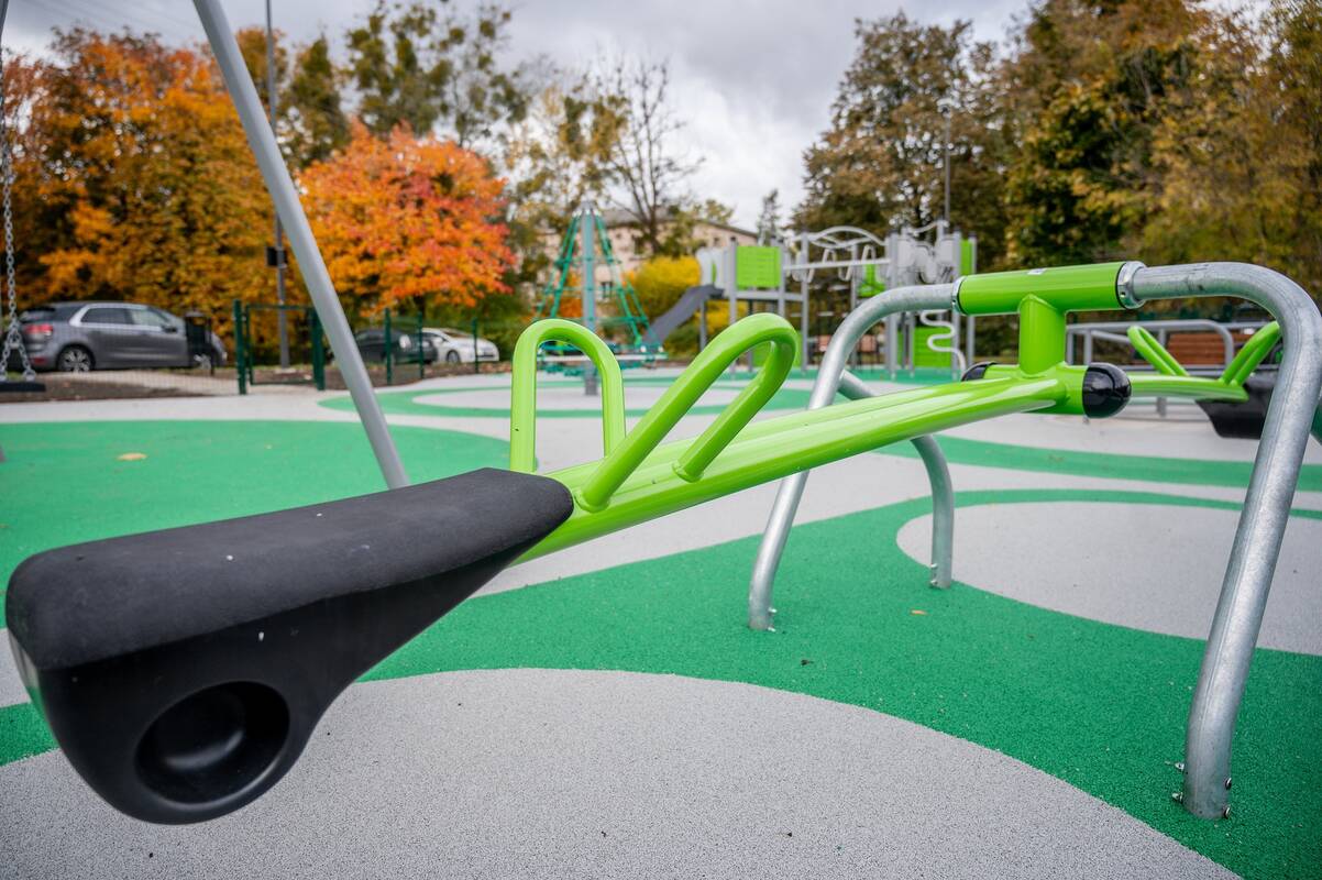 Atnaujintame parke įrengta moderni sporto ir laisvalaikio infrastruktūra: nauji suoliukai, tinklinio aikštelė su smėliu bei futbolo zona.