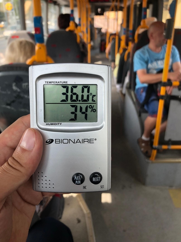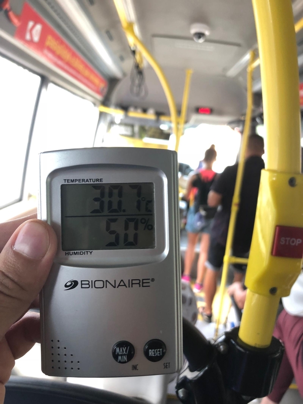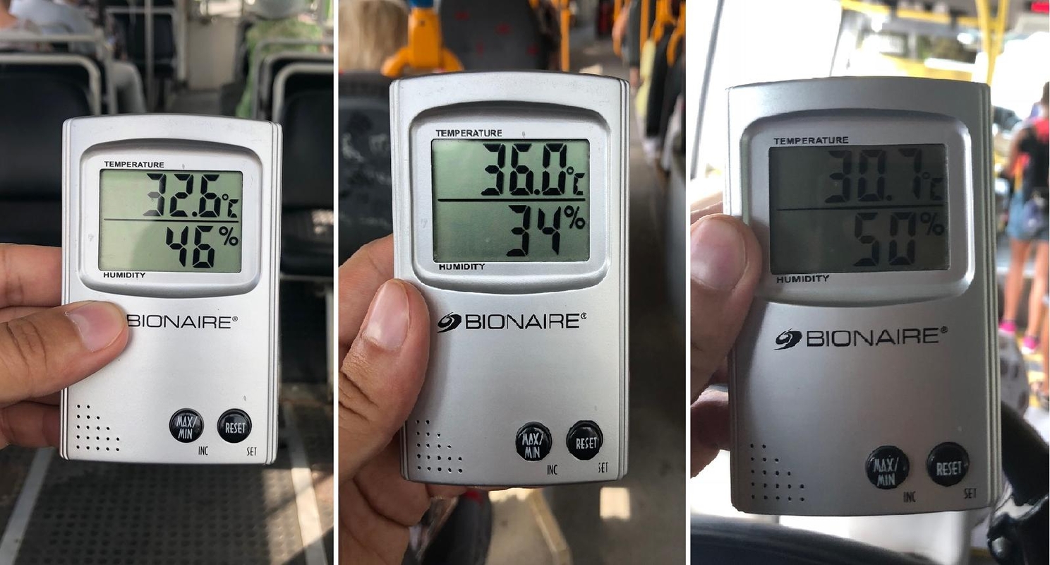 Į portalo kauno.diena.lt redakciją kreipėsi kaunietis Saulius ir papasakojo apie atliktą eksperimentą. Jis miesto viešajame transporte per karščius pamatavo oro temperatūrą. Termometras pakilo gerokai aukščiau, nei tikėtasi. Tad, anot keleivio, tokia aukšta temperatūra tikrai nėra komfortiška.