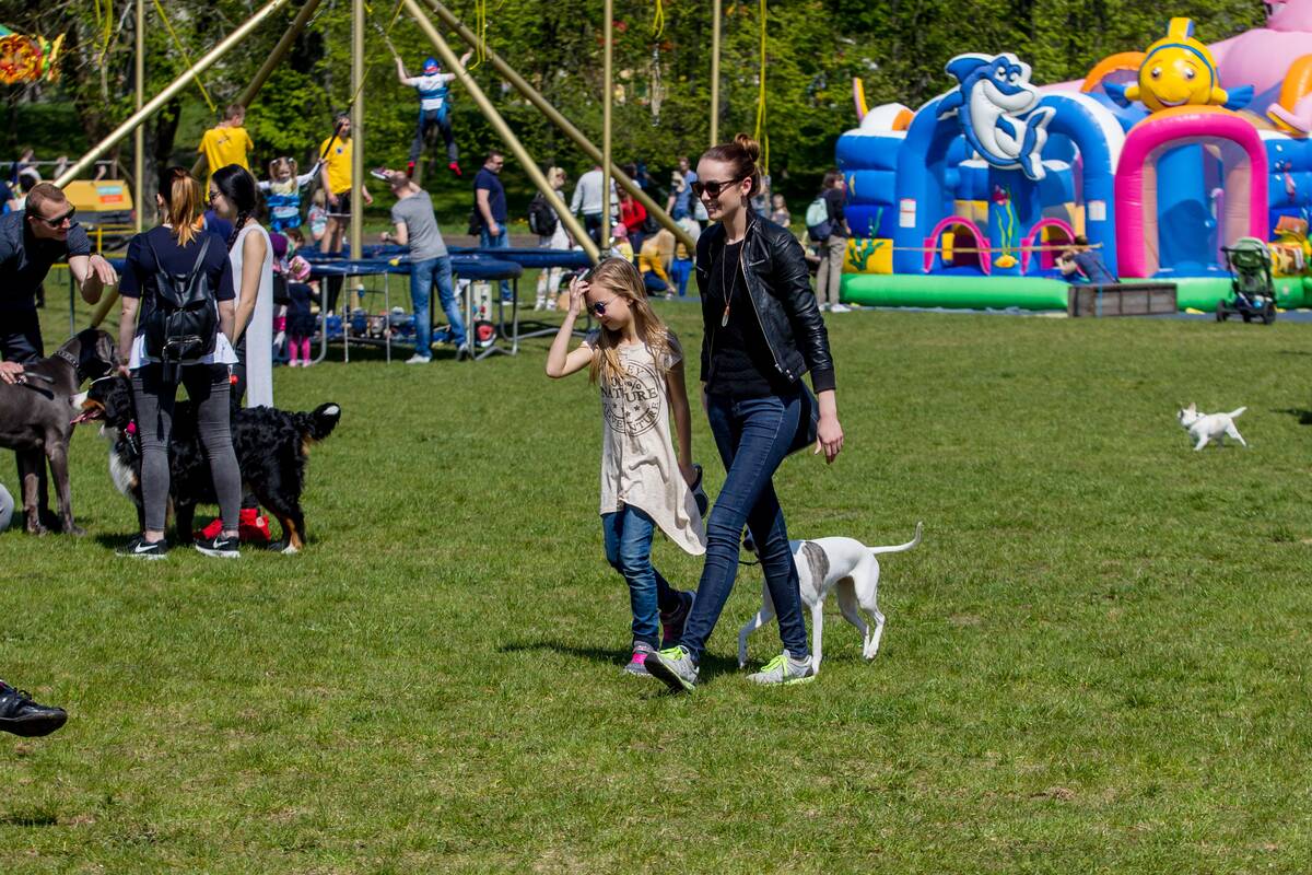 Šiltą dieną saulės spinduliais mėgavosi ir šiuo metu namų neturintys augintiniai. Gyvūnų globėjų asociacijos nariai į šventę atsivedė kelis beglobius keturkojus ir kvietė kauniečius nelikti abejingais, pasiimti naujus draugus į namus.