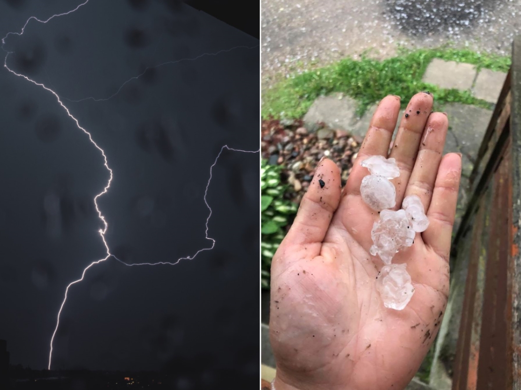 „Liūčių su perkūnijomis ir krušomis debesys toliau skalauja Marijampolės, dalį Alytaus, Kauno, Vilniaus ir Utenos apskričių. Dar vienas židinys per Lenkiją juda Lietuvos pietvakarinių ir vakarinių rajonų link (Tauragės, Klaipėdos apskr.) Ten paryčiais, jeigu debesys išliks tokie pat aktyvūs, numatomos smarkios liūtys ir miestų gatvių poplūdžiai“, – rašė feisbuko grupės „Orai ir klimatas Lietuvoje“ sinoptikai ir pasidalijo Kęstučio Ivanausko iš Prienų vaizdo įrašu.