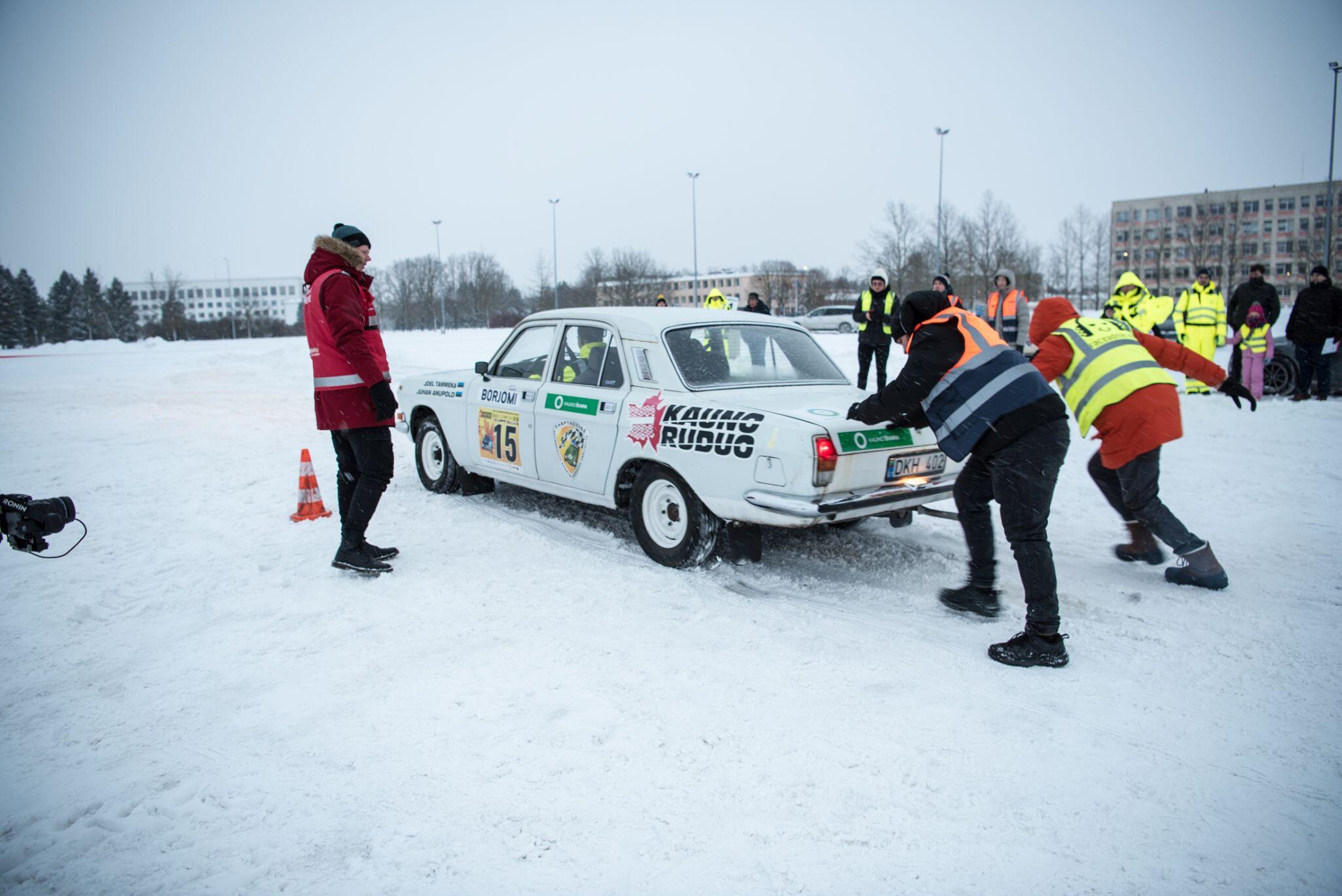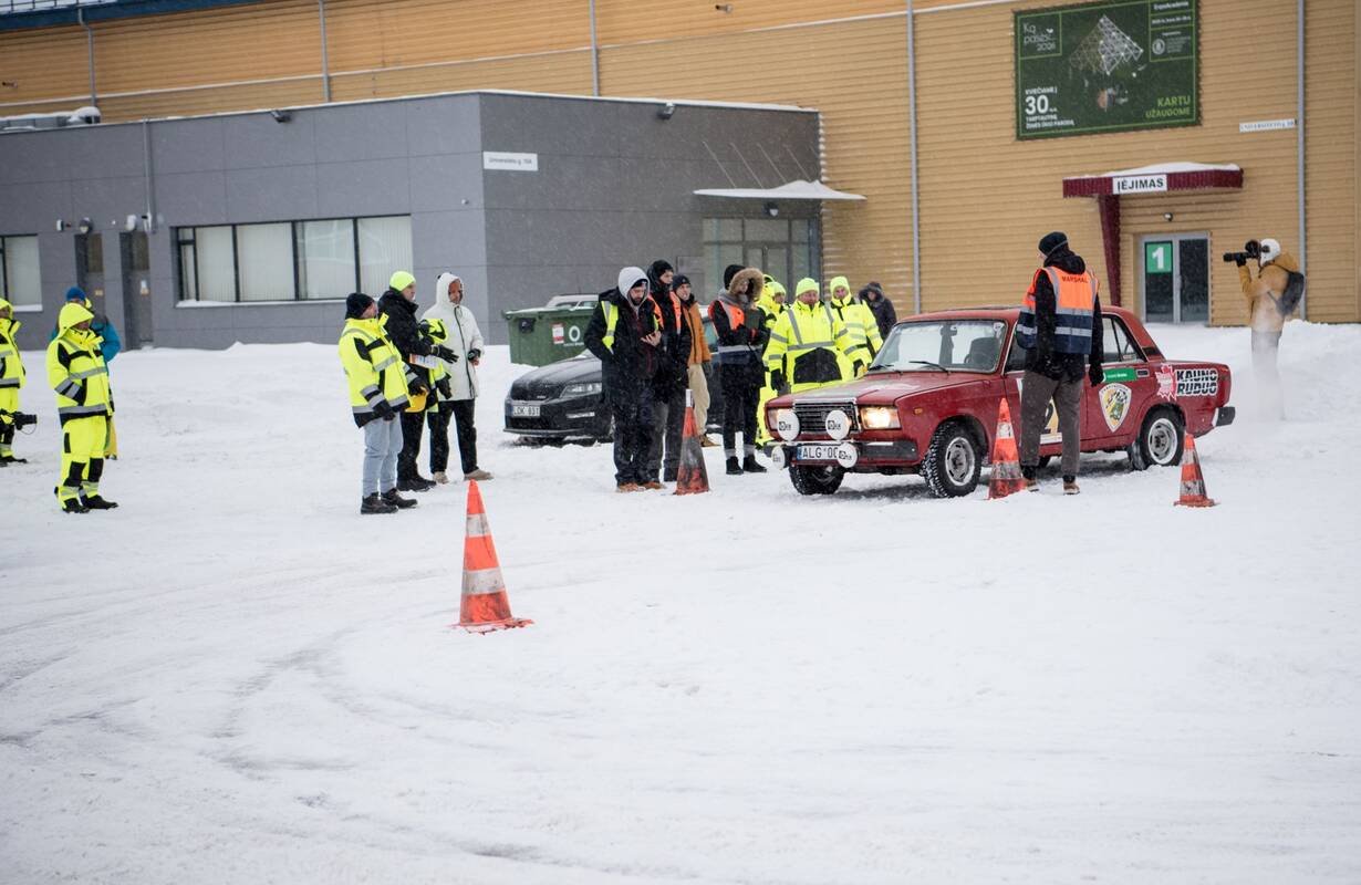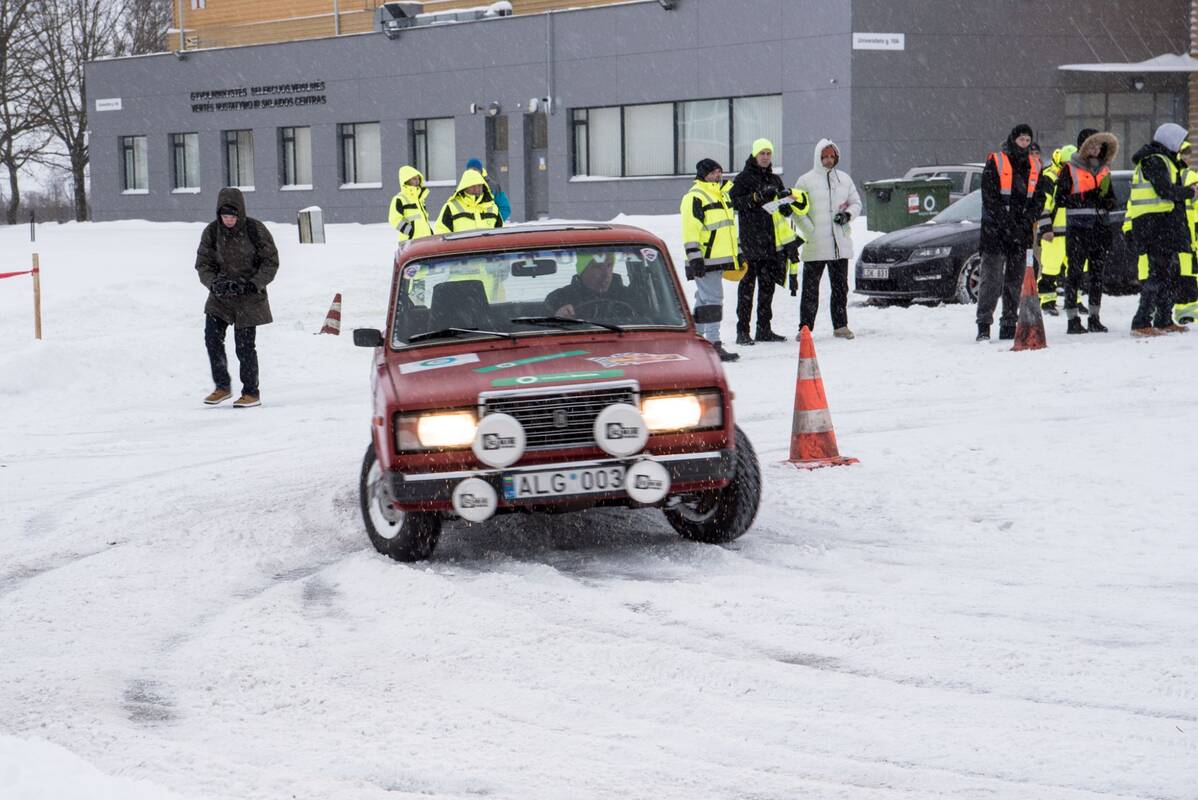 Kalėdinio slalomo dalyviai varžybų atidarymui susibūrė jaukioje Žemės ūkio akademijos paviljono salėje, kur prieš renginio pradžią pagerbti jubiliejus atšventę veteranai. Daugiausia dėmesio susilaukė automobilių sporto gerbėjas, ir pats išbandęs jėgas ne vienose lenktynėse, Kauno rajono savivaldybės meras Valerijus Makūnas, neseniai paminėjęs, kaip ir pati savivaldybė, 70-čio sukaktį.