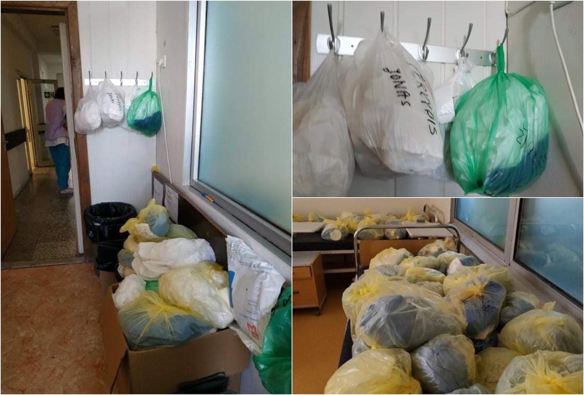 „Čia yra vienkartiniai rūbai, sudėti po gydytojų pamainos Kauno infekcinėje ligoninėje. Man rašo, kad sistema dabar ten tokia – nusirengi ir įdedi į maišą. Užrašai vardą. Atėjęs sekančią pamainą susirandi savo maišiuką ir rengiesi vėl. Rengiesi dar kartą. Vienkartinius rūbus. Infekcinėje ligoninėje. Suprantat?“ – piktinosi žinoma moteris.