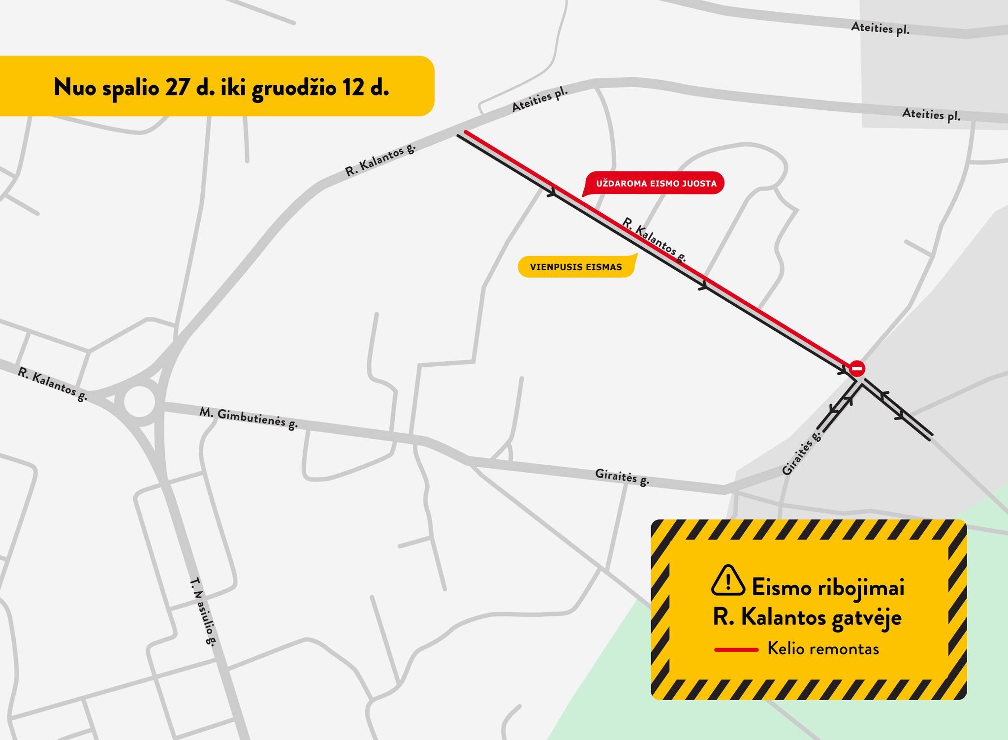 Spalio 27 d., pirmadienį, R. Kalantos gatvėje pradedami kapitalinio remonto darbai.