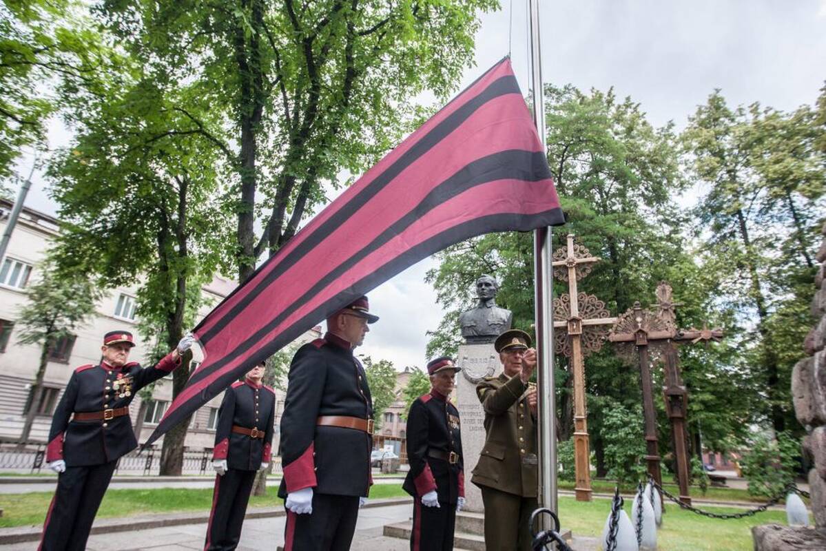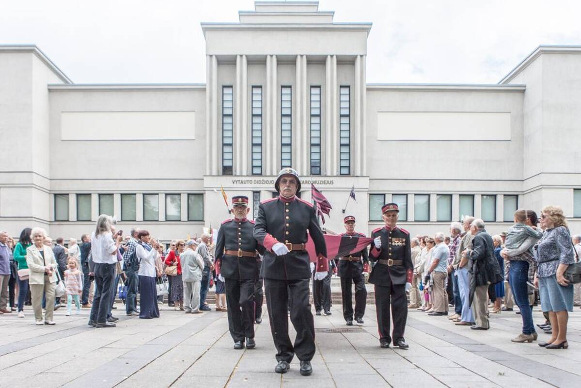 Išsirikiavus šaulių rikiuotei, dešimt garbaus amžiaus Lietuvos šaulių sąjungos atstovų, vilkinčių specialiai šiai progai skirtomis uniformomis, iškilmingai atnešė Vyčio kryžiaus ordino vėliavą prie Nežinomo kareivio kapo. Dimisijos kapitonui Gediminui Dobkevičiui suteikta garbė vėliavą pakelti.