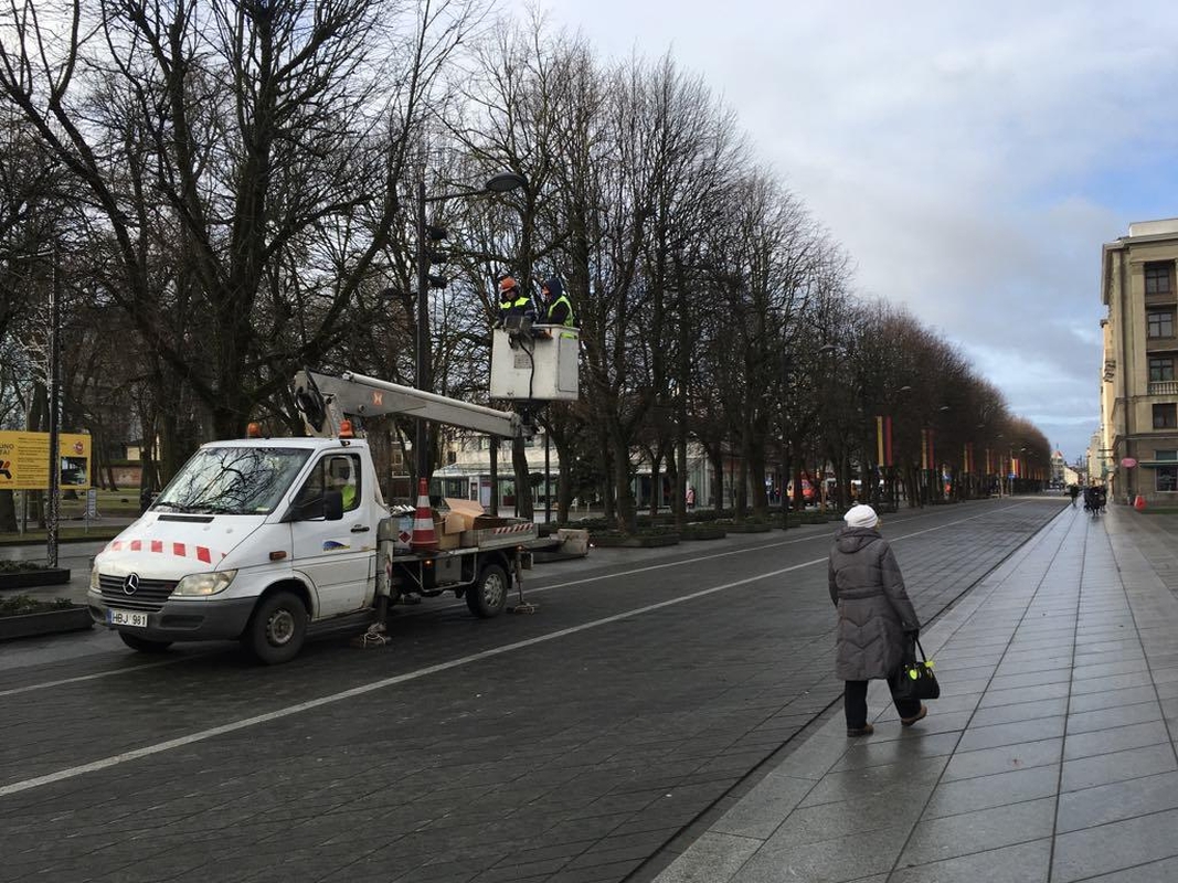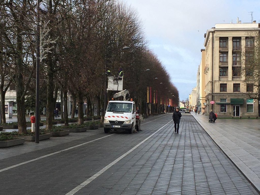 Laisvės alėjoje darbininkai ketvirtadienį nukabino kalėdines dekoracijas, o jų vietoje išskleidė trispalves. Tikėtina, kad link vakaro Laisvės alėjoje jau bus pilna vėliavų ir jos papuoš kiekvieną šviestuvą.