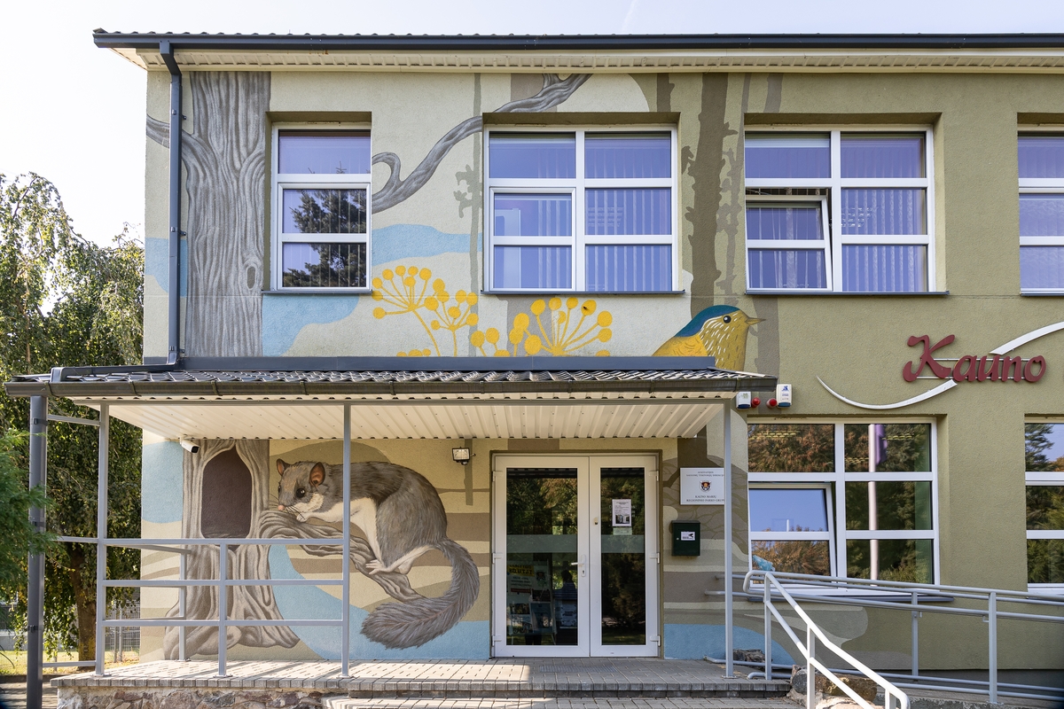 Rugsėjui įsibėgėjant, peržengiau Kauno marių regioninio parko Gamtos mokyklos slenkstį. Prieš tai akis paganiau į pastato sienas, ant kurių „Gyvos grafikos“ meistrų teptukai nutupdė įspūdingo dydžio lapę, ežiuką, genį ir kitus miško gyventojus.