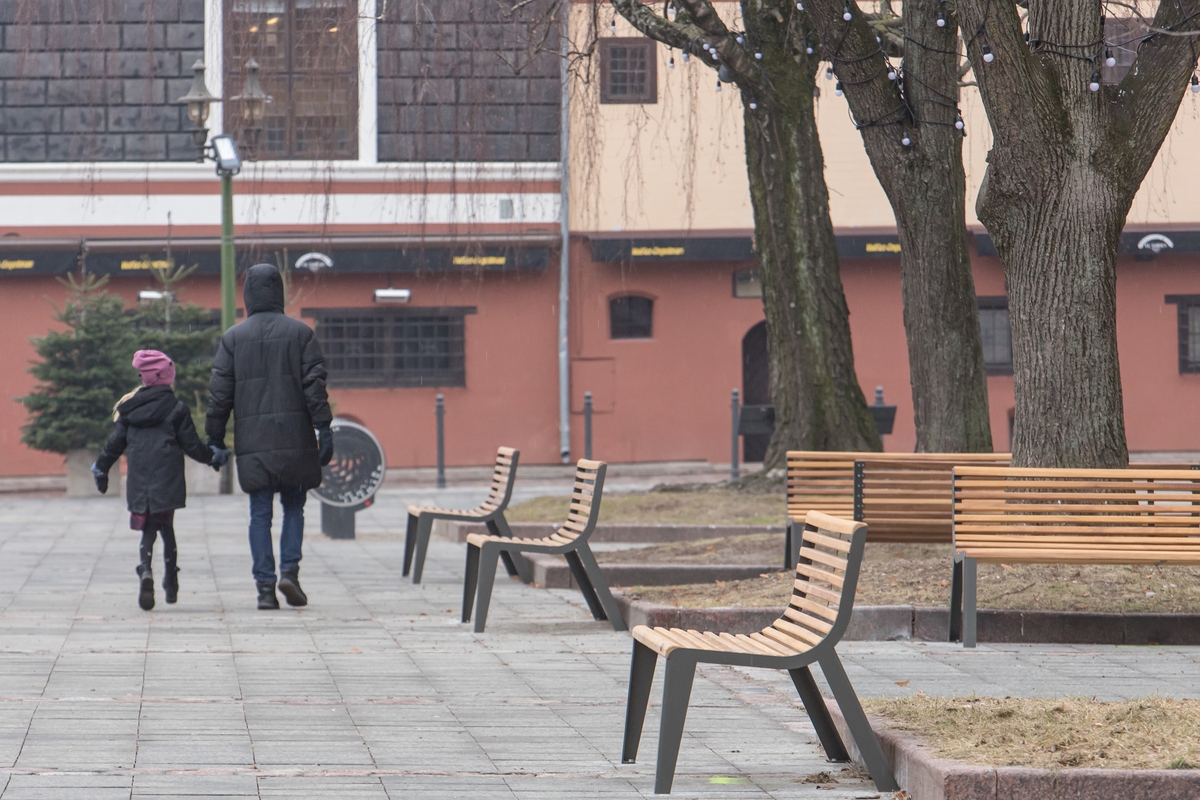 Miesto savivaldybės atstovai patvirtino, kad mažosios infrastruktūros įrengimo darbai Vilniaus gatvėje jau prasidėjo. Artimiausiu metu medinių suoliukų bus dar daugiau