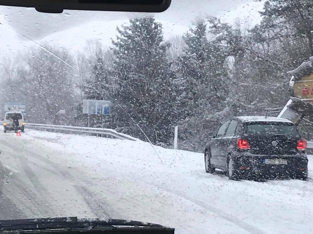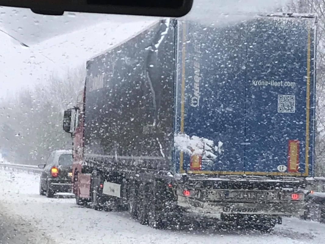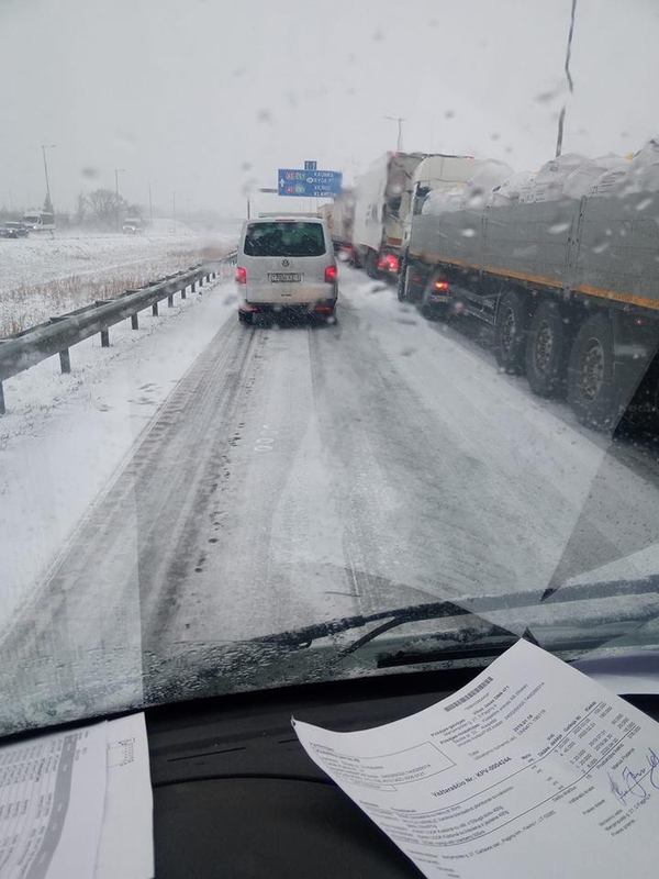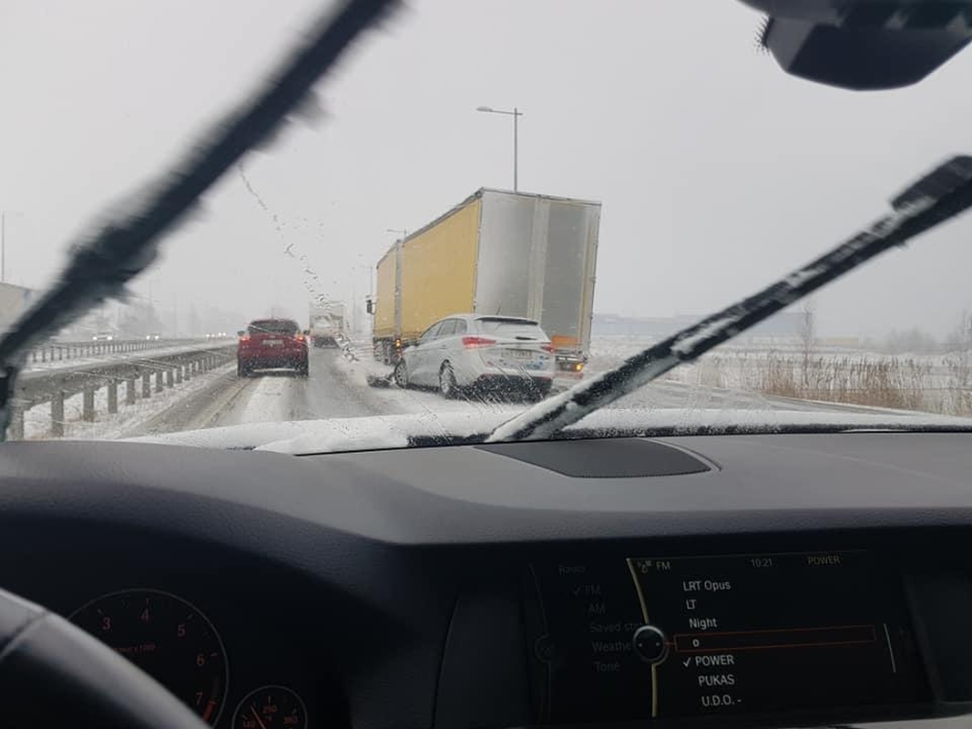 Perspėjimo signalas būti atsargiems skrieja ir iš važiuojančių magistrale Kaunas-Vilnius. Vairuotojai praneša, kad net į kitą eismo juostą persirikiuoti sudėtinga. Rekomenduojama pasirinkti ne leistiną, o saugų greitį.