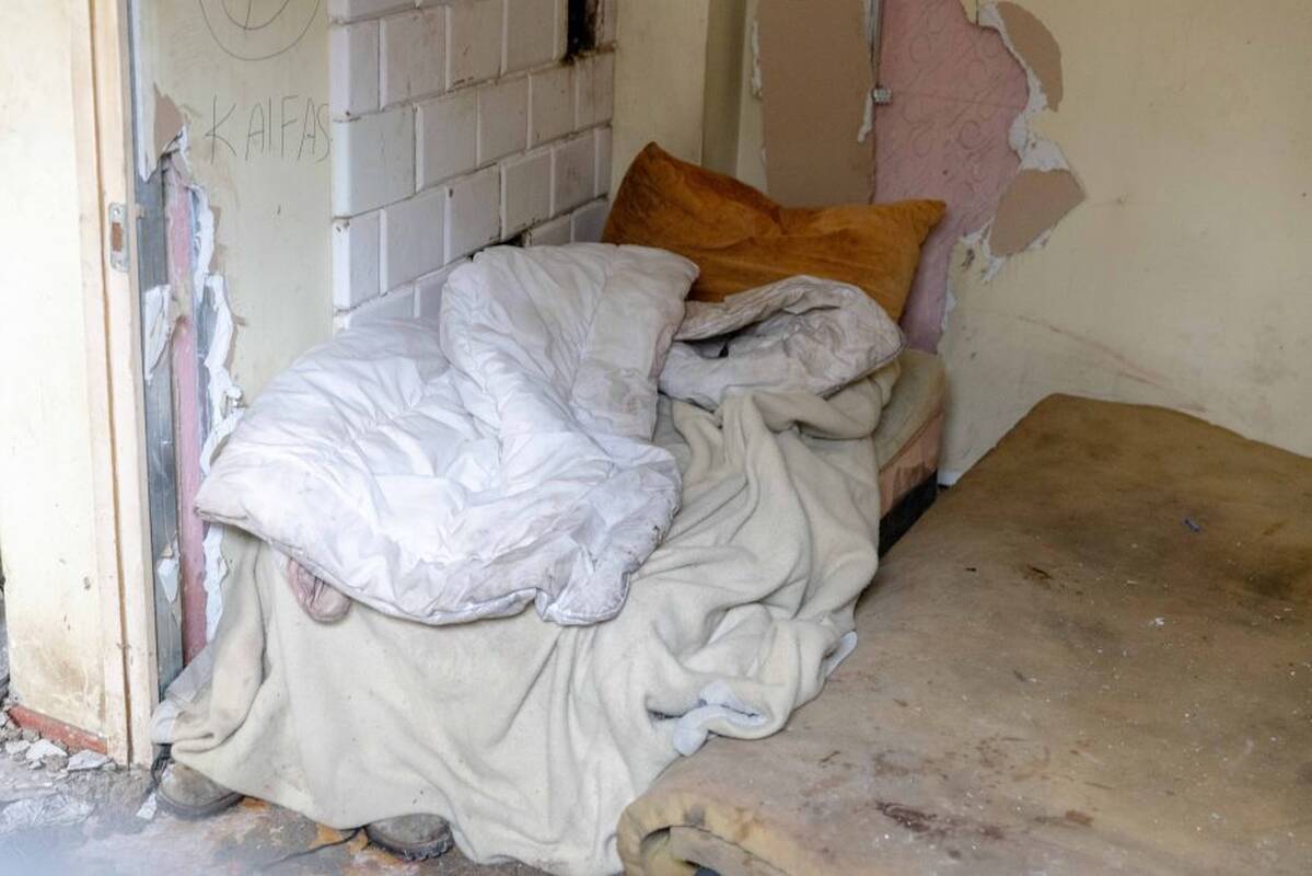 Toje apleisto Tunelio gatvės medinuko patalpoje su šiukšlių kalnais ir atsilupusiais sienų tapetais buvo kažkas panašaus į lovą, kurios kojūgalis stovėjo ant batų. O šio guolio patalynė buvo tokios pačios antisanitarinės būklės, kaip ir greta tiesiog ant grindų patiestas čiužinys.