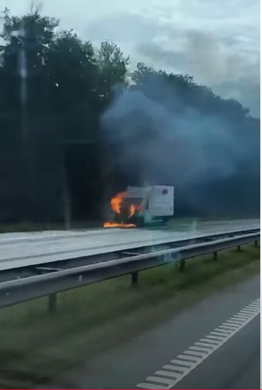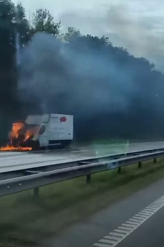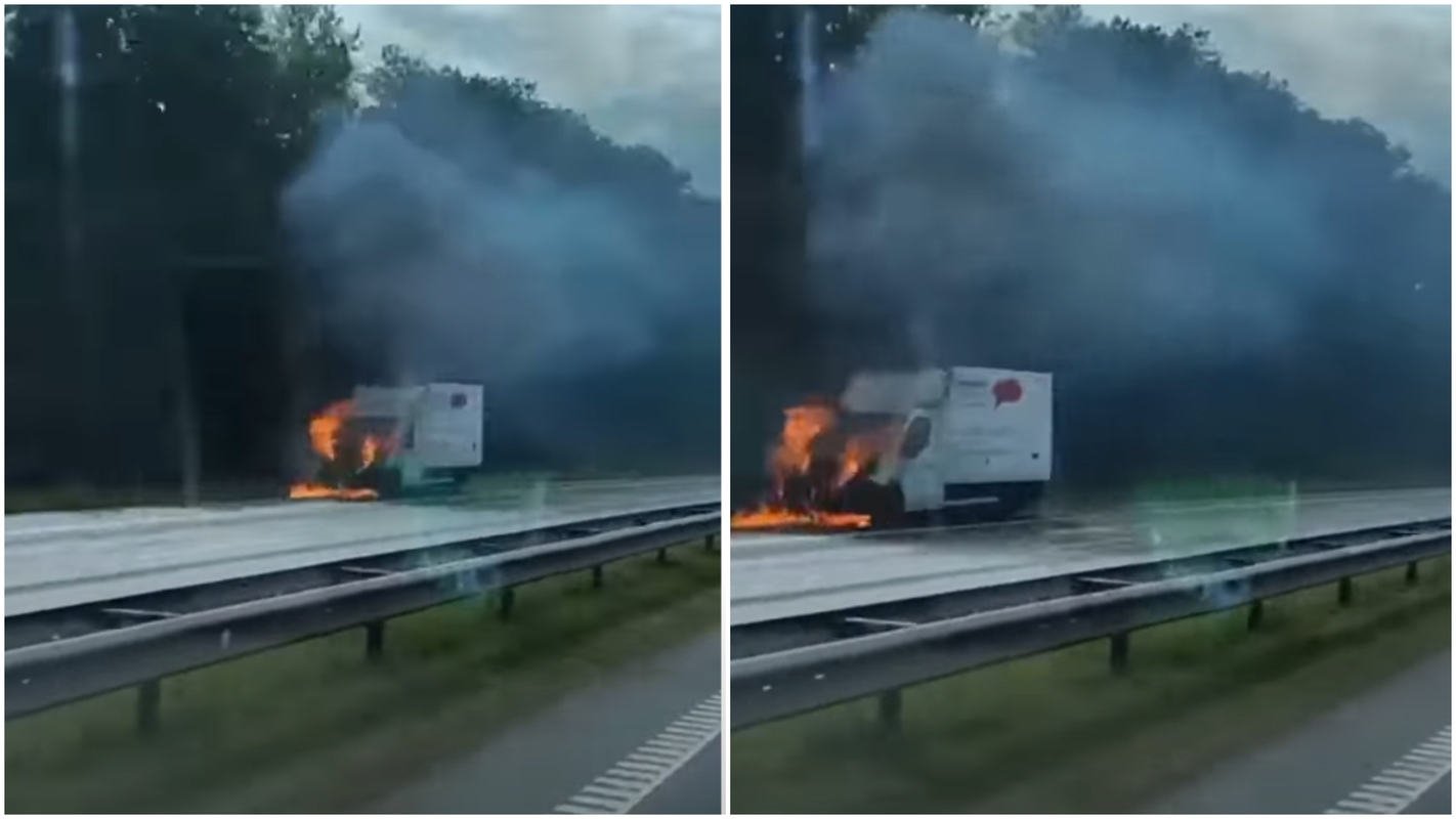 Kaip matyti vaizdo įraše, transporto priemonė degė atvira liepsna.