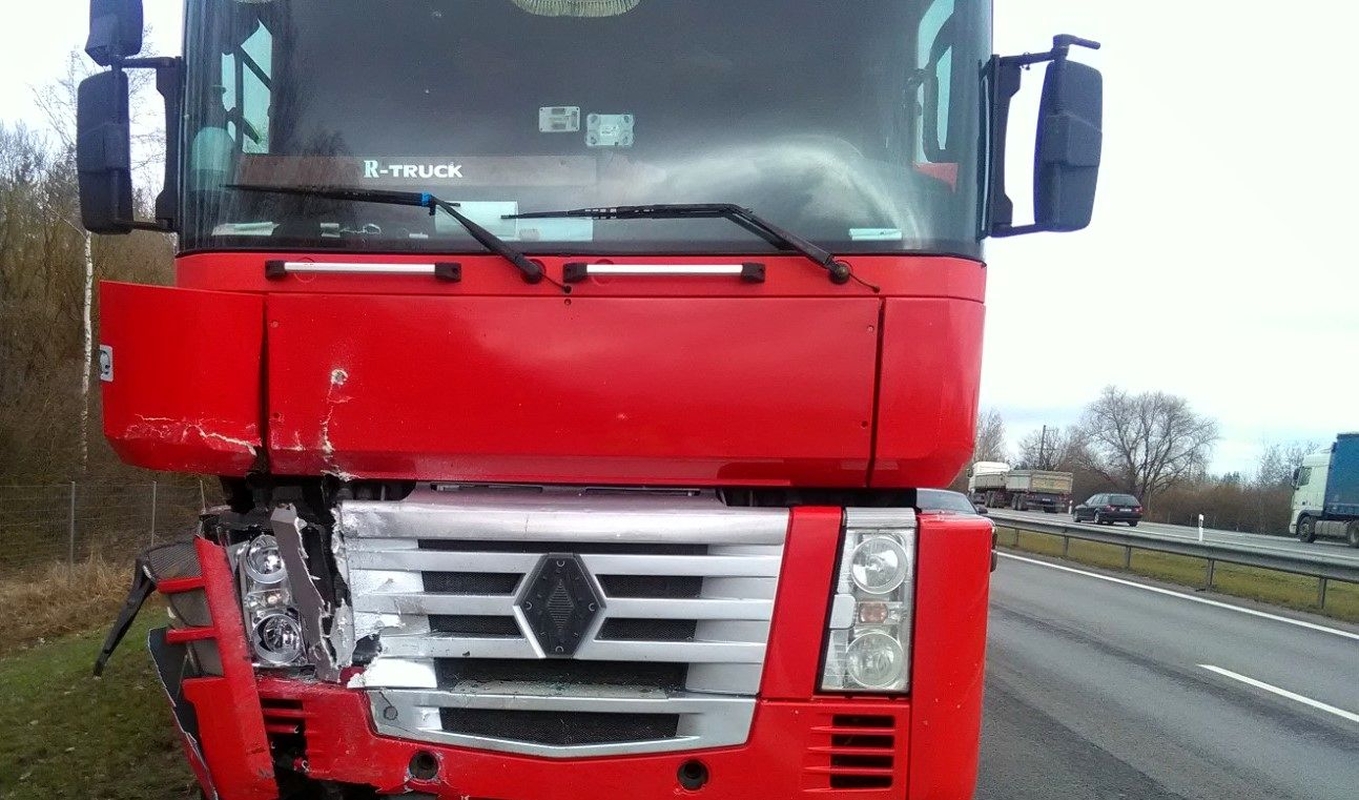 Į padėti sustojusius automobilius atsitrenkė 21 metų vyro vairuojamas vilkikas „Renault“.