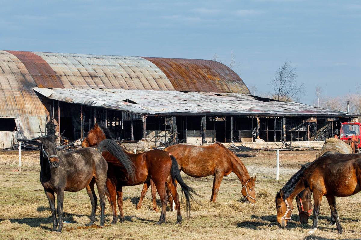 Ugnis pasiglemžė medinį pastatą ir jame buvusius du kumeliukus, šieną. Termiškai paveiktas prie žirgyno priblokuotas skardinis angaras, kuriame įrengtas maniežas, sudegė dalis medinių maniežo gegnių. Laimė, 11 žirgų pavyko išgelbėti.
