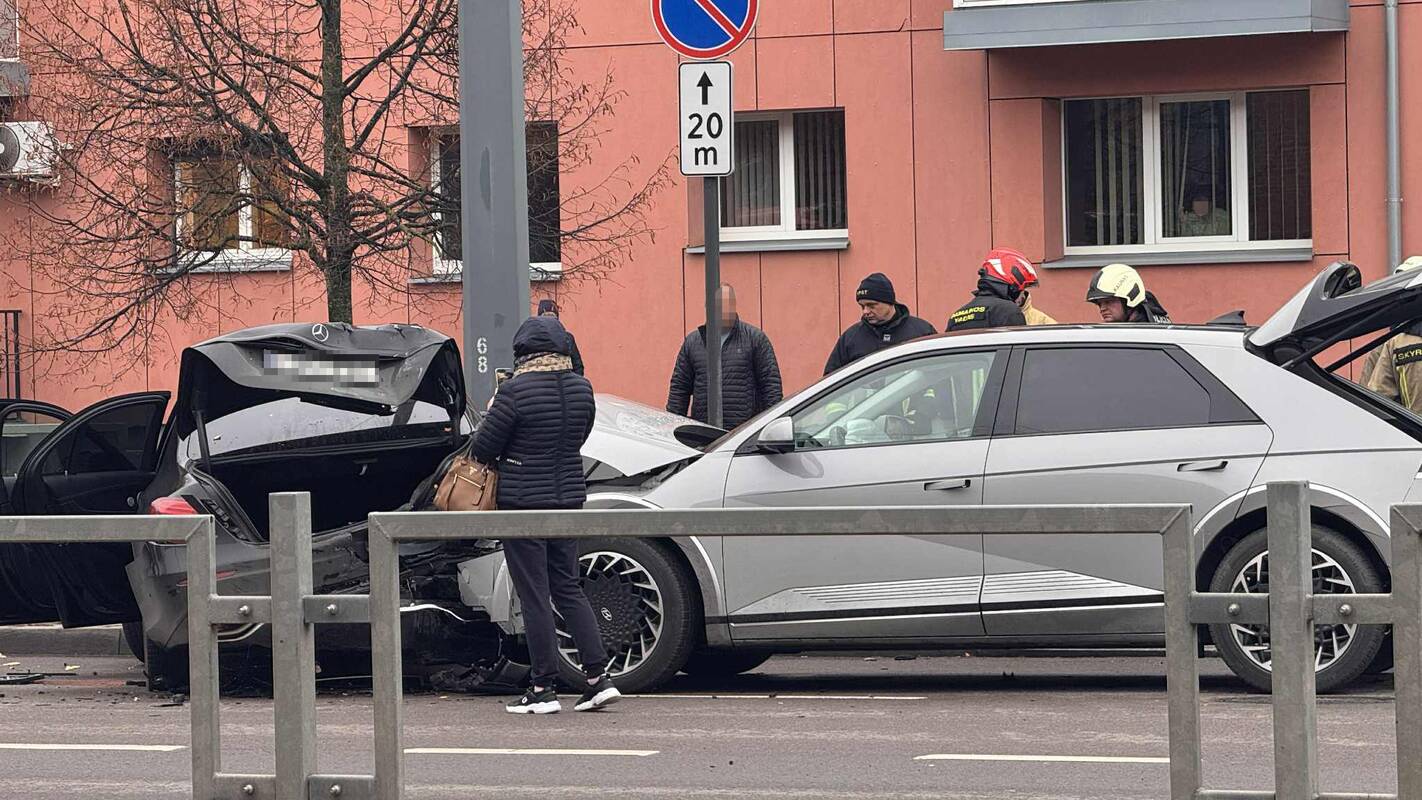 Panašu, kad greitosios medikų apžiūrėtas automobilį „Mercedes-Benz“ vairavęs asmuo, kuris, greičiausiai, neišvengė šio susidūrimo, išsukdamas į prospektą iš įvažiavimo į daugiabučių kiemus. Tačiau jį, kaip ir sustabdyti nespėjusį paskui važiavusio elektromobilio, pirminiais duomenimis – „Hyundai“, vairuotoją nuo rimtesnių sužalojimų galimai išgelbėjo išsiskleidusios oro pagalvės.